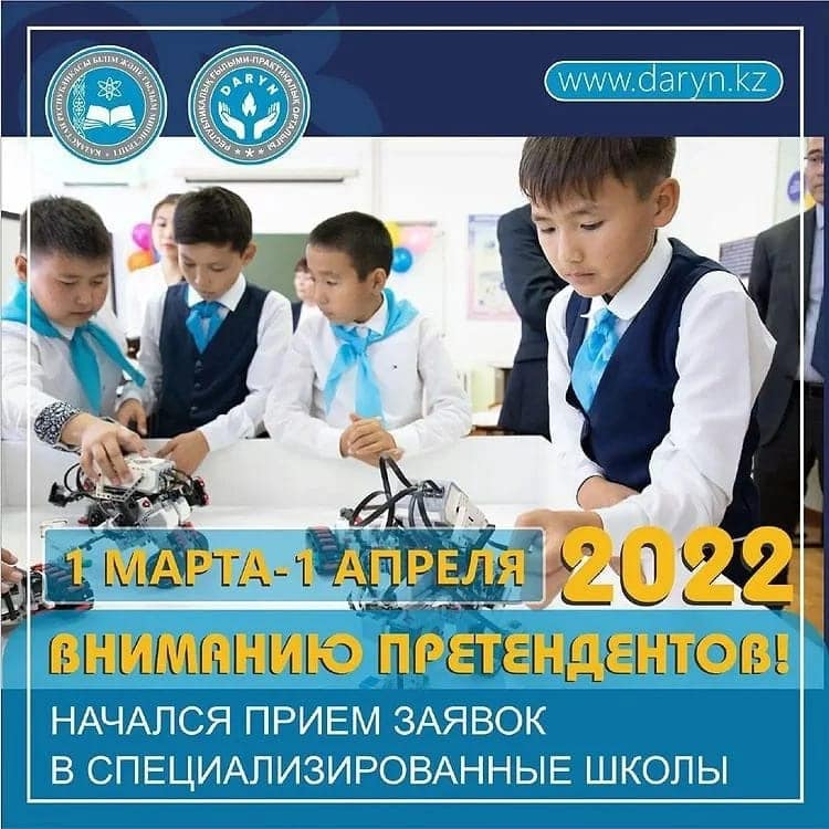 2022 жылдың 1 наурызынан «Дарын» республикалық ғылыми-практикалық орталығы 2022-2023 оқу жылына мамандандырылған білім беру ұйымдарына оқуға түсуге құжаттар қабылдауды бастады.