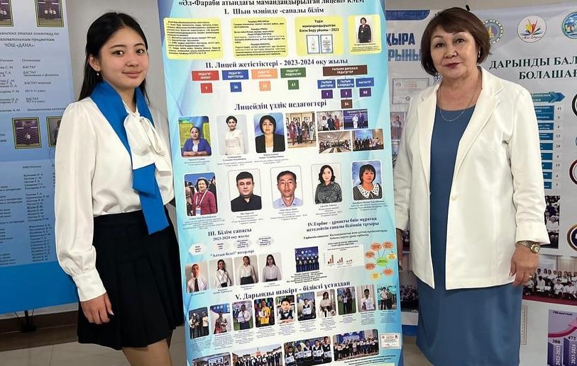 Лицейдің 9Ә сынып оқушысы Сапабек Алтынай облыс әкімі мен қонақтарға Әл-Фараби атындағы мамандандырылған лицейінің 2023-2024 оқу жылында жеткен жетістіктерін таныстырып өтті.
