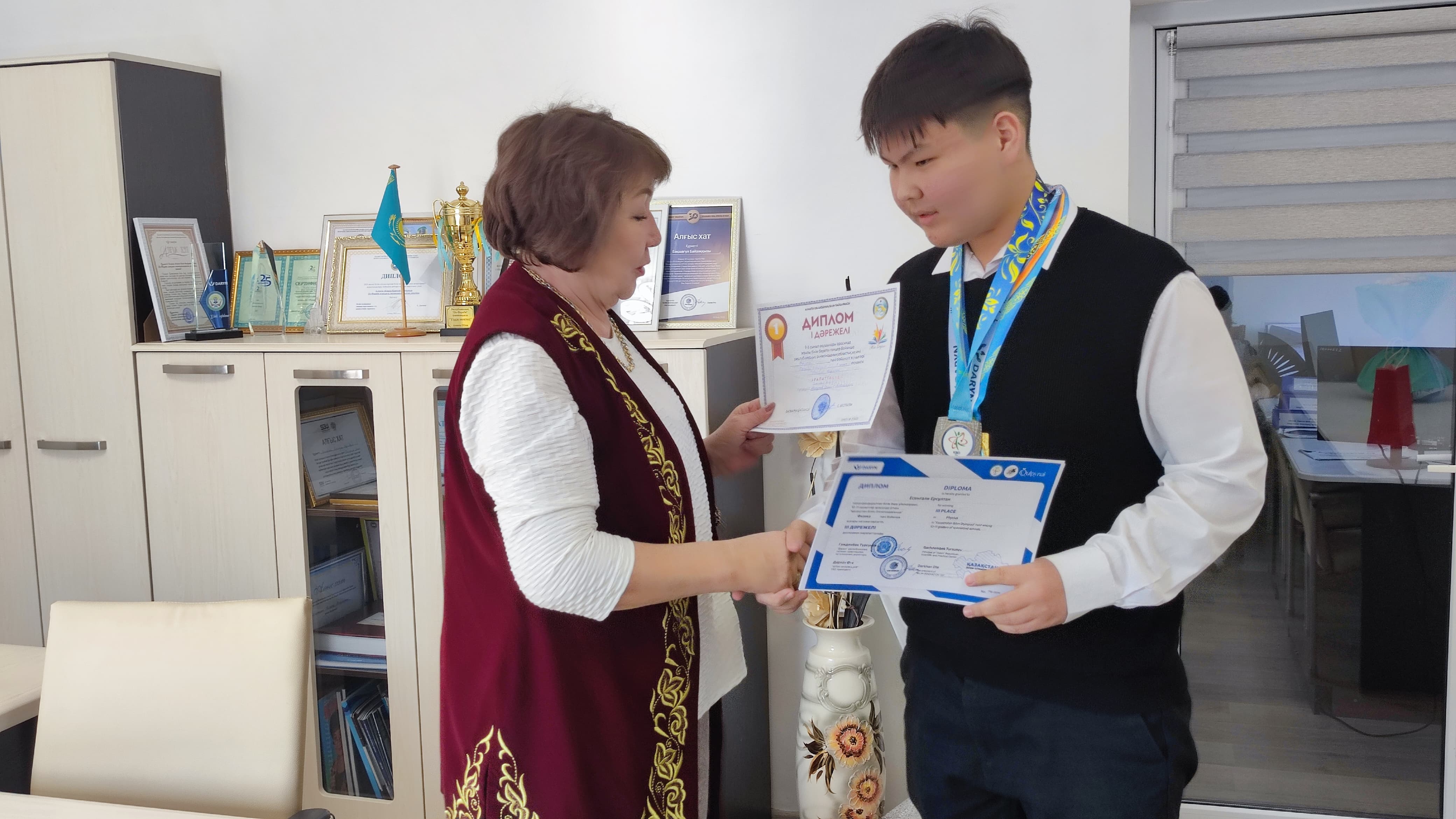 11Ә сынып оқушысы Есенғали Ерсұлтанды жүлделі орындарымен құттықтау
