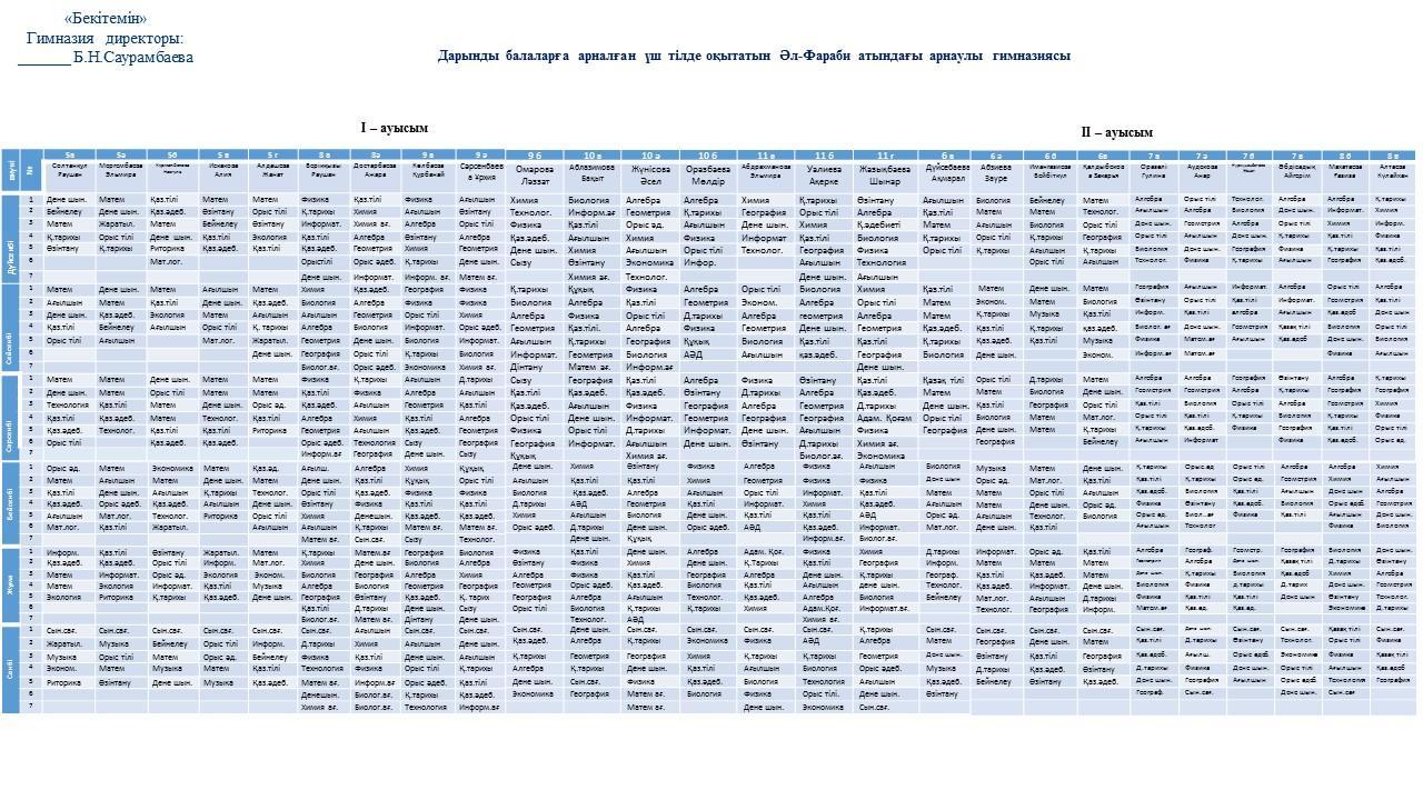сабақ кестесі