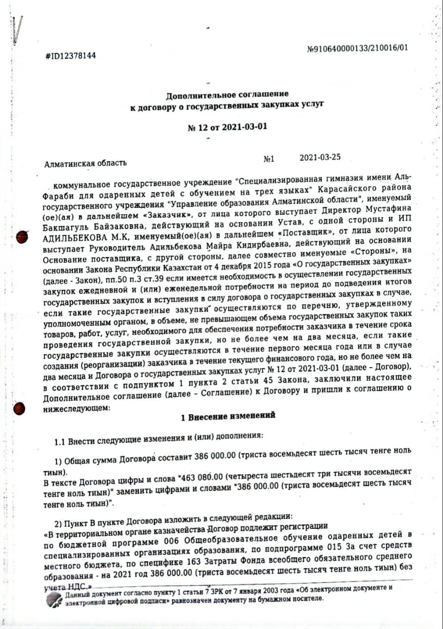 » Дополнительное соглашение к договору о государственных закупках услуг №12