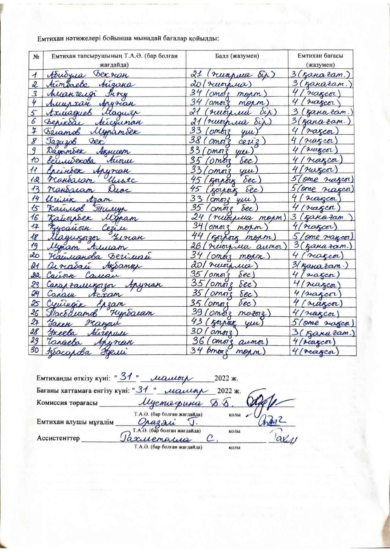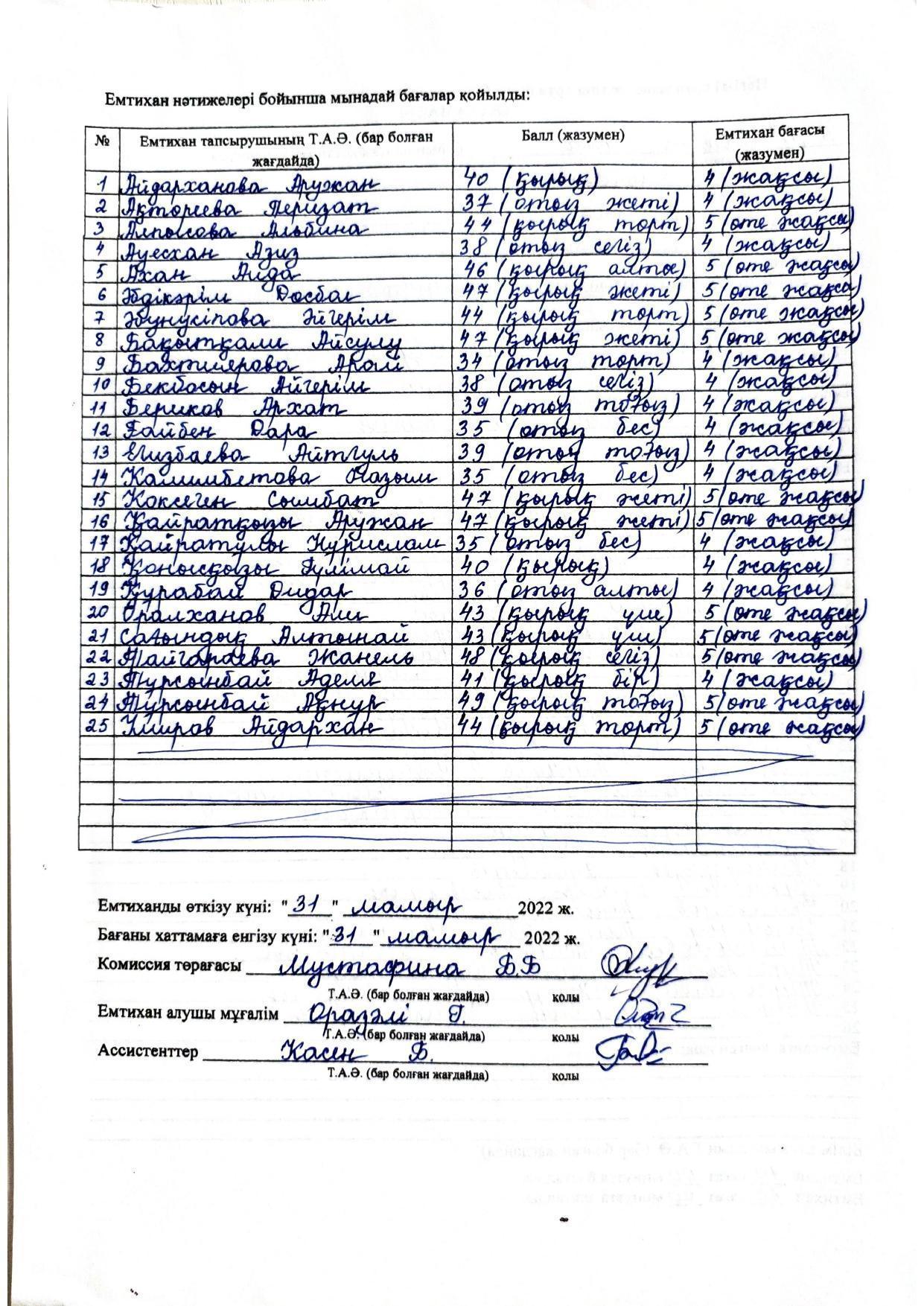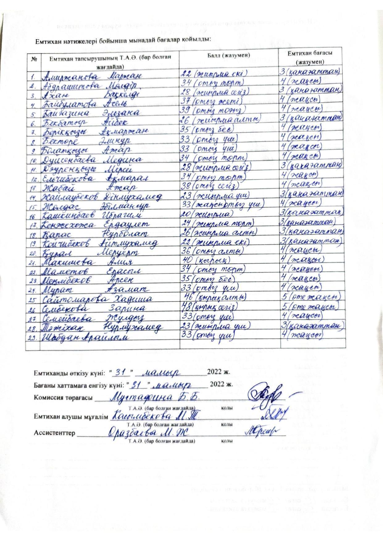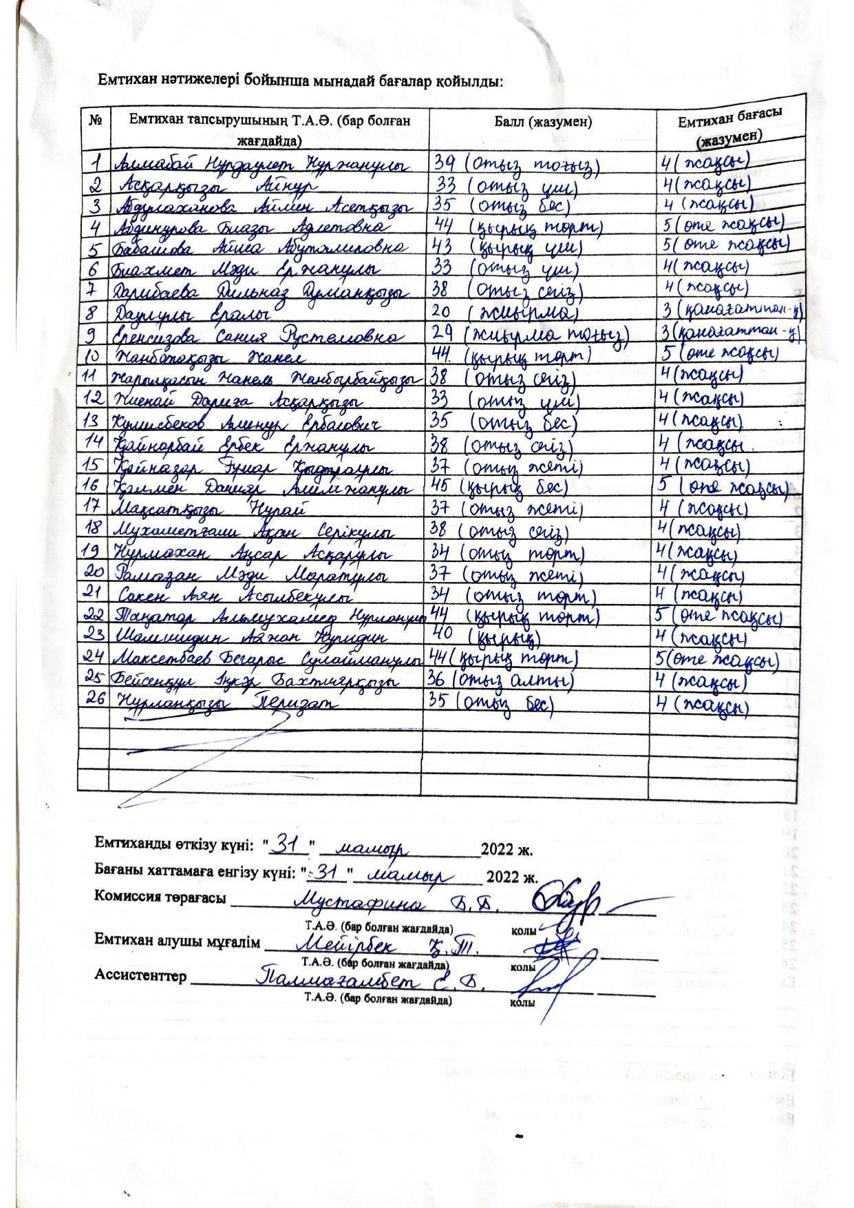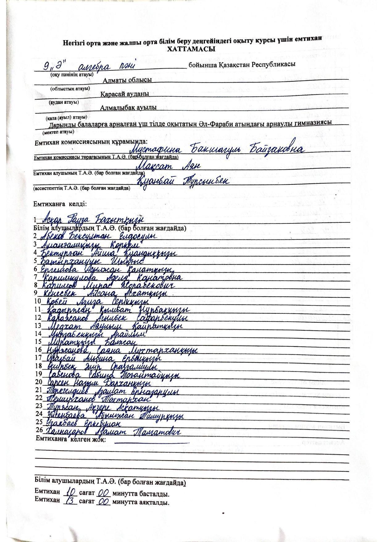 Қорытынды бітіру емтихандарының хаттамасы 2021-2022. Алгебра