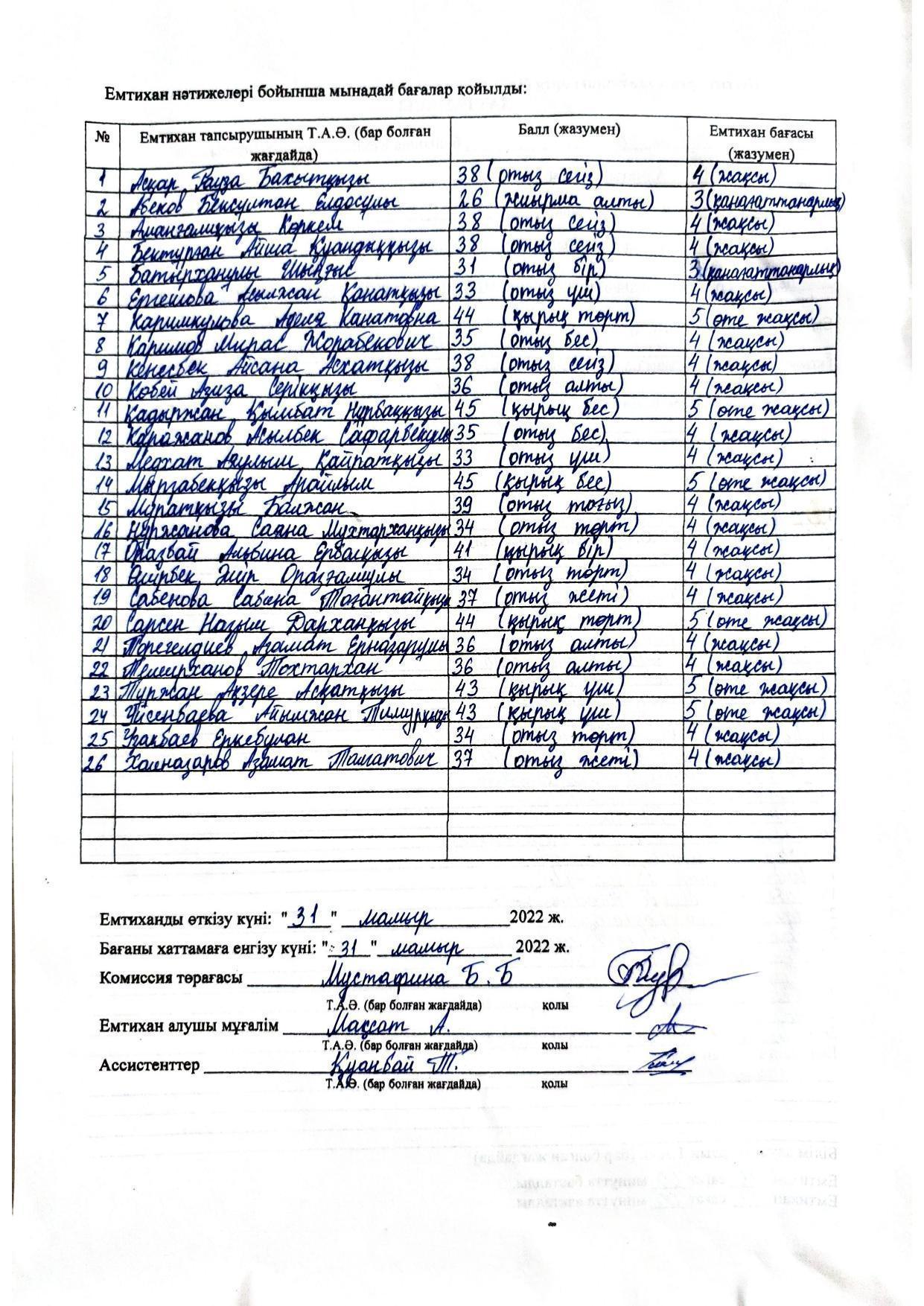 Қорытынды аттестаттау