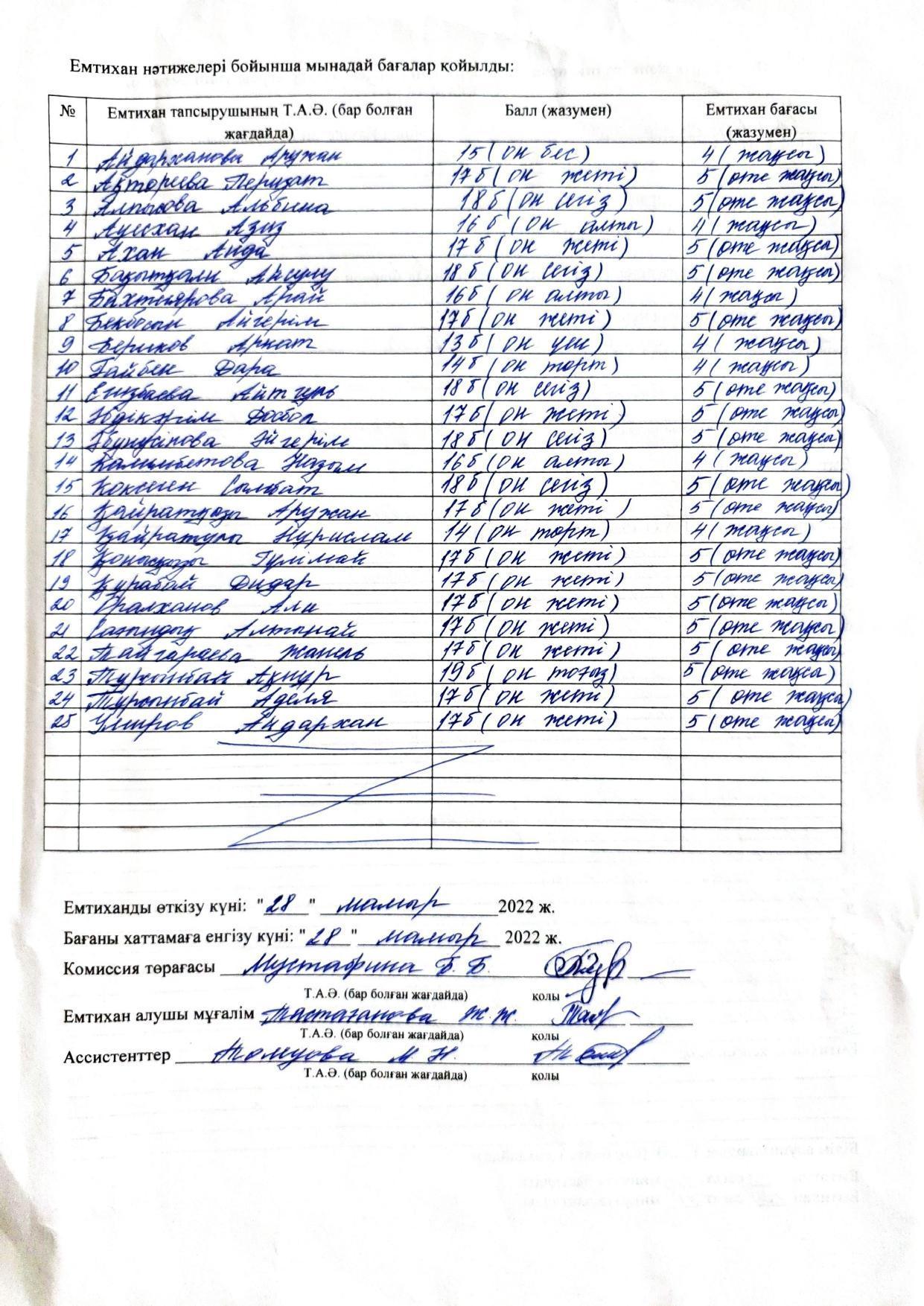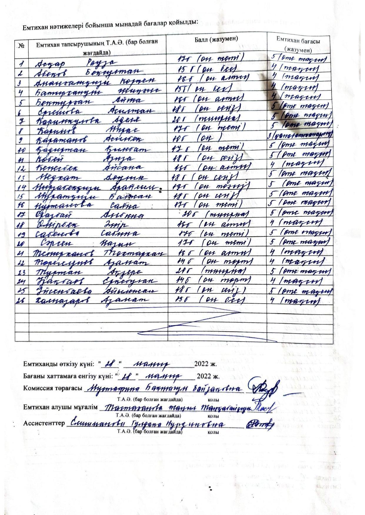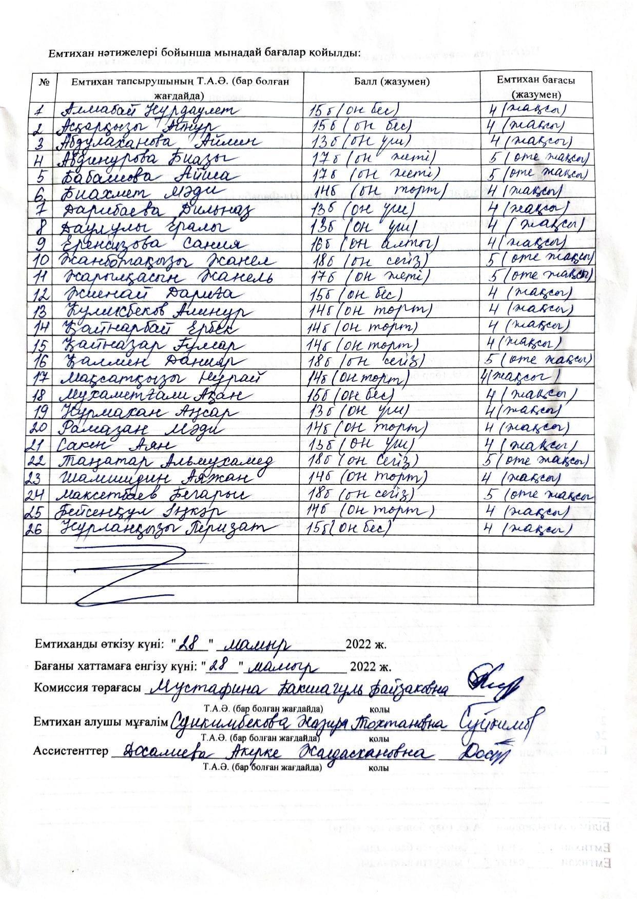 » Қорытынды аттестаттау. Қазақ тілінен емтихан хаттамалары