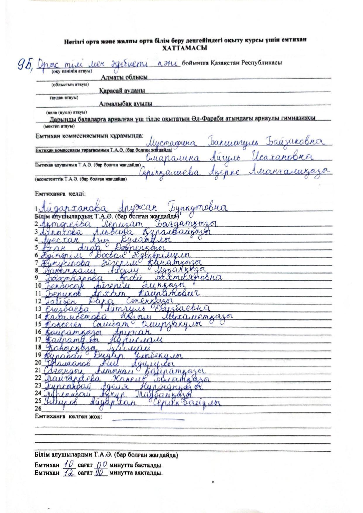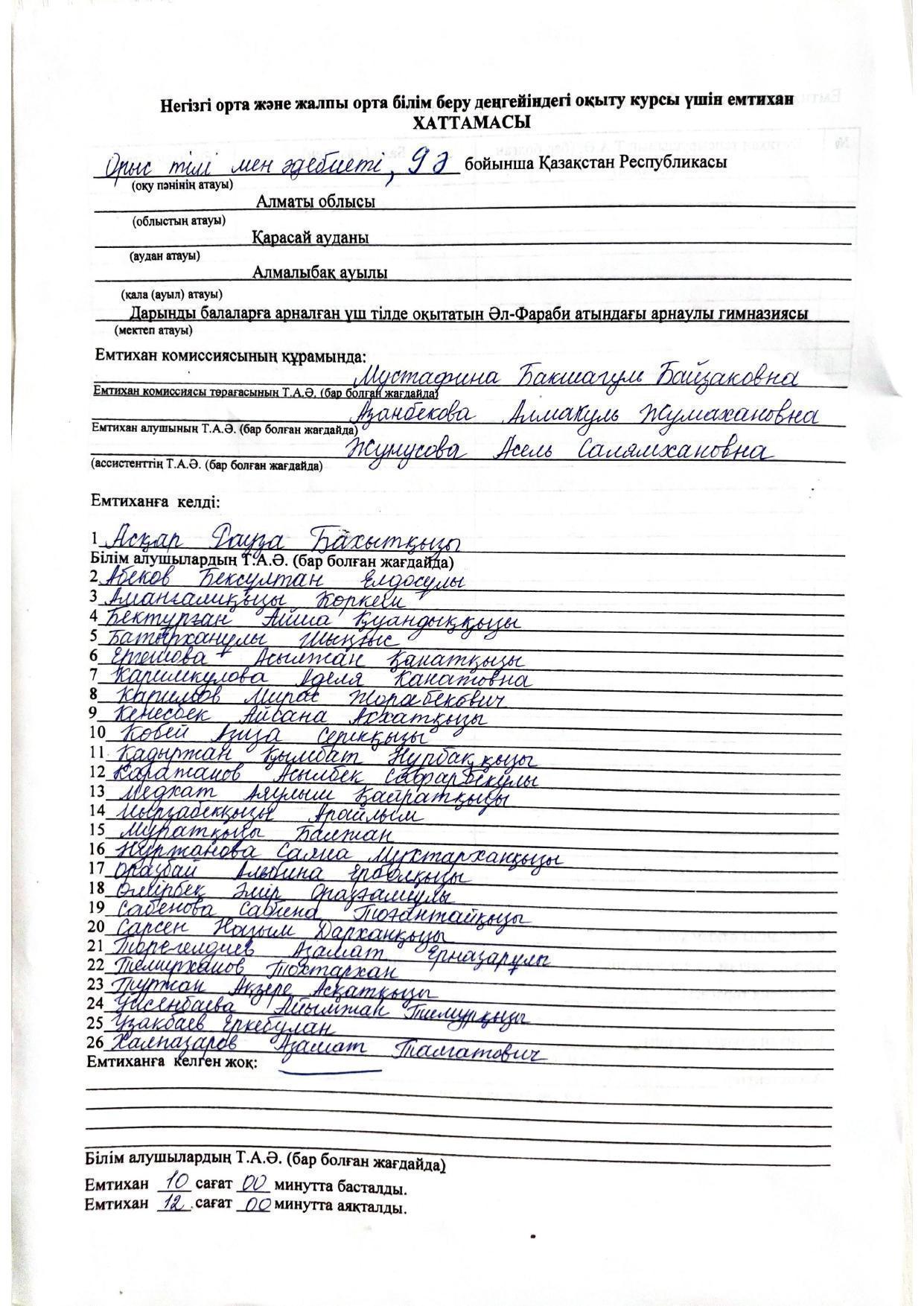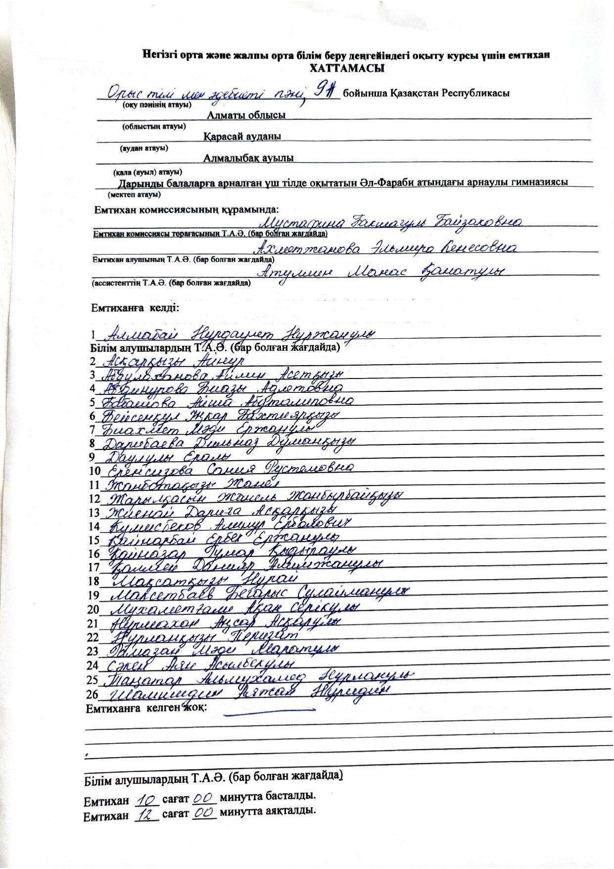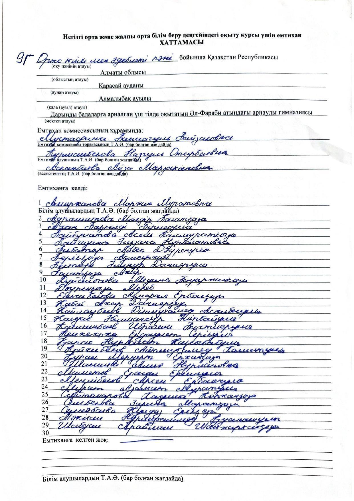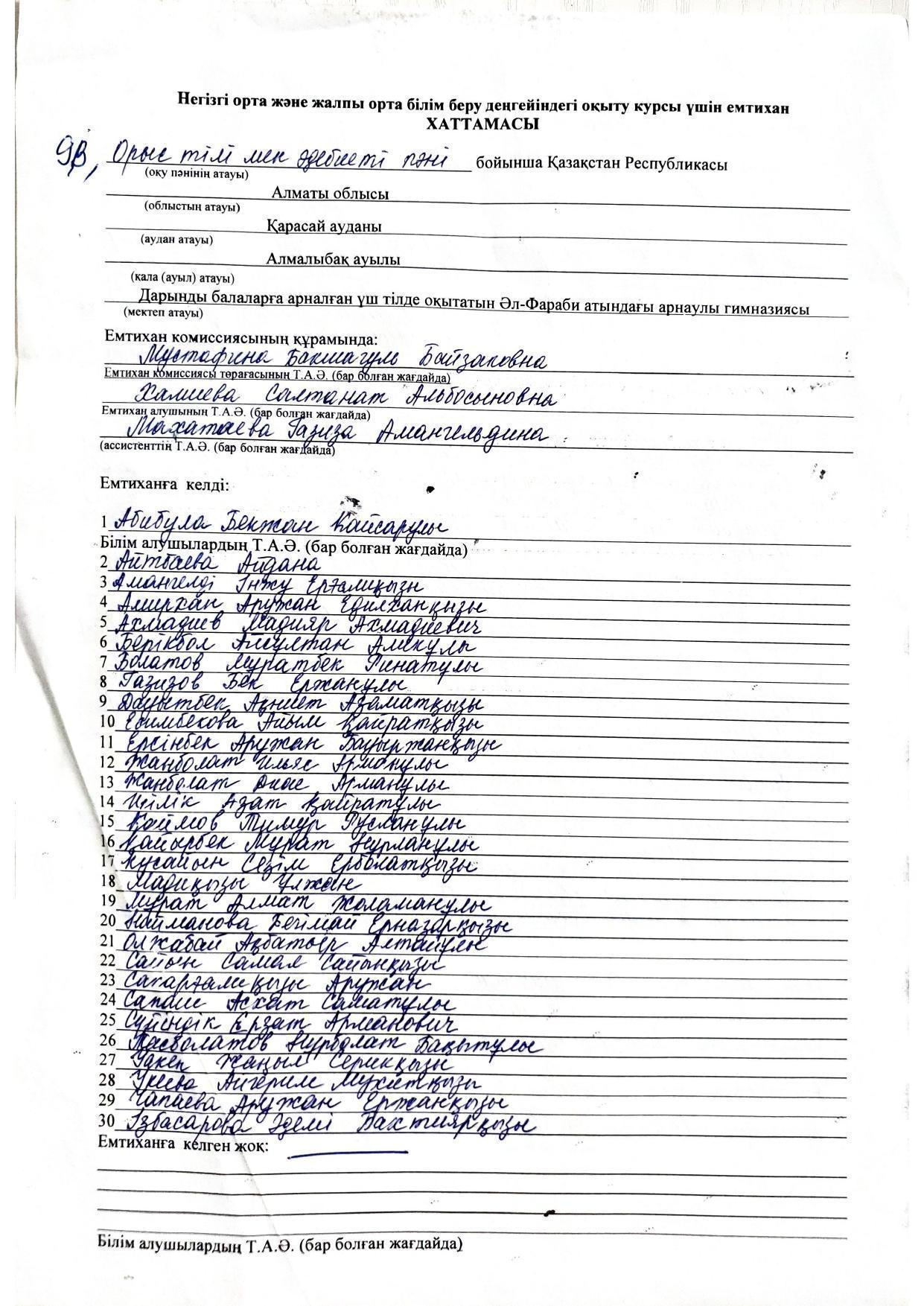 Қорытынды аттестаттау. Қазақ тілінен емтихан хаттамалары