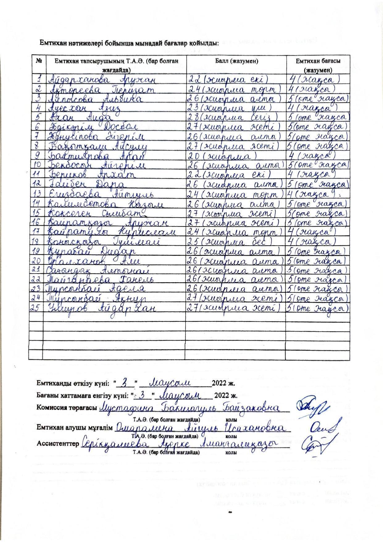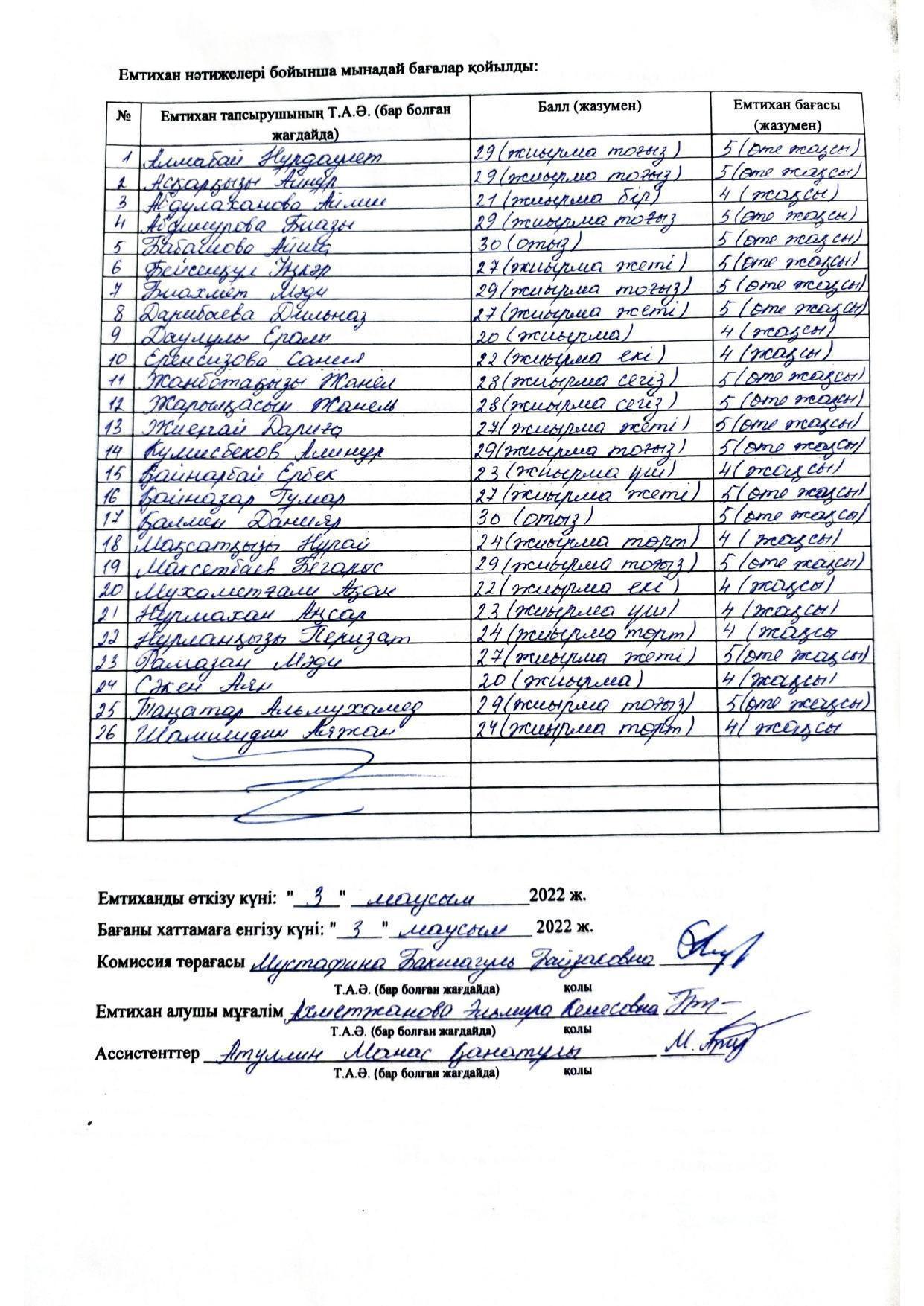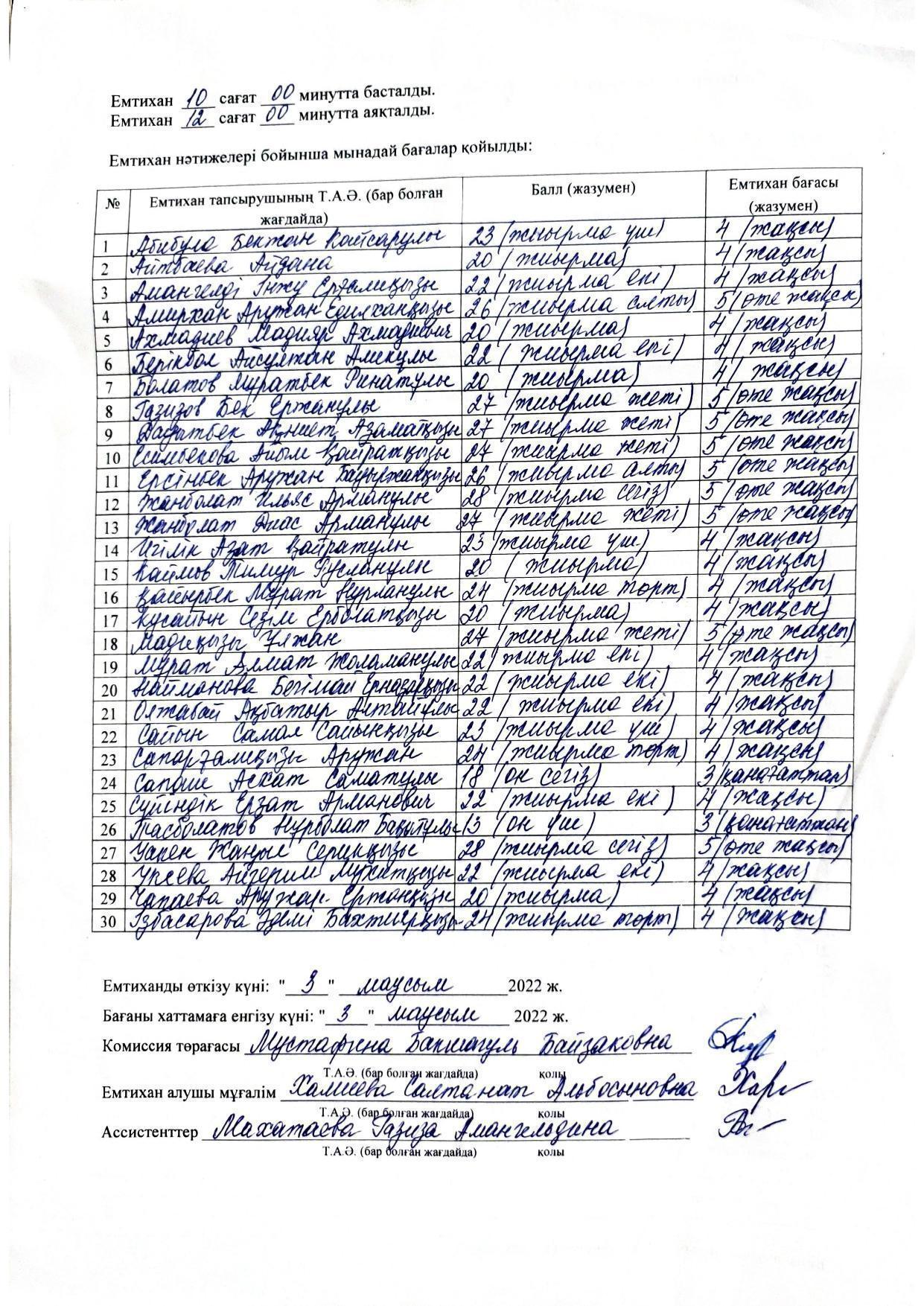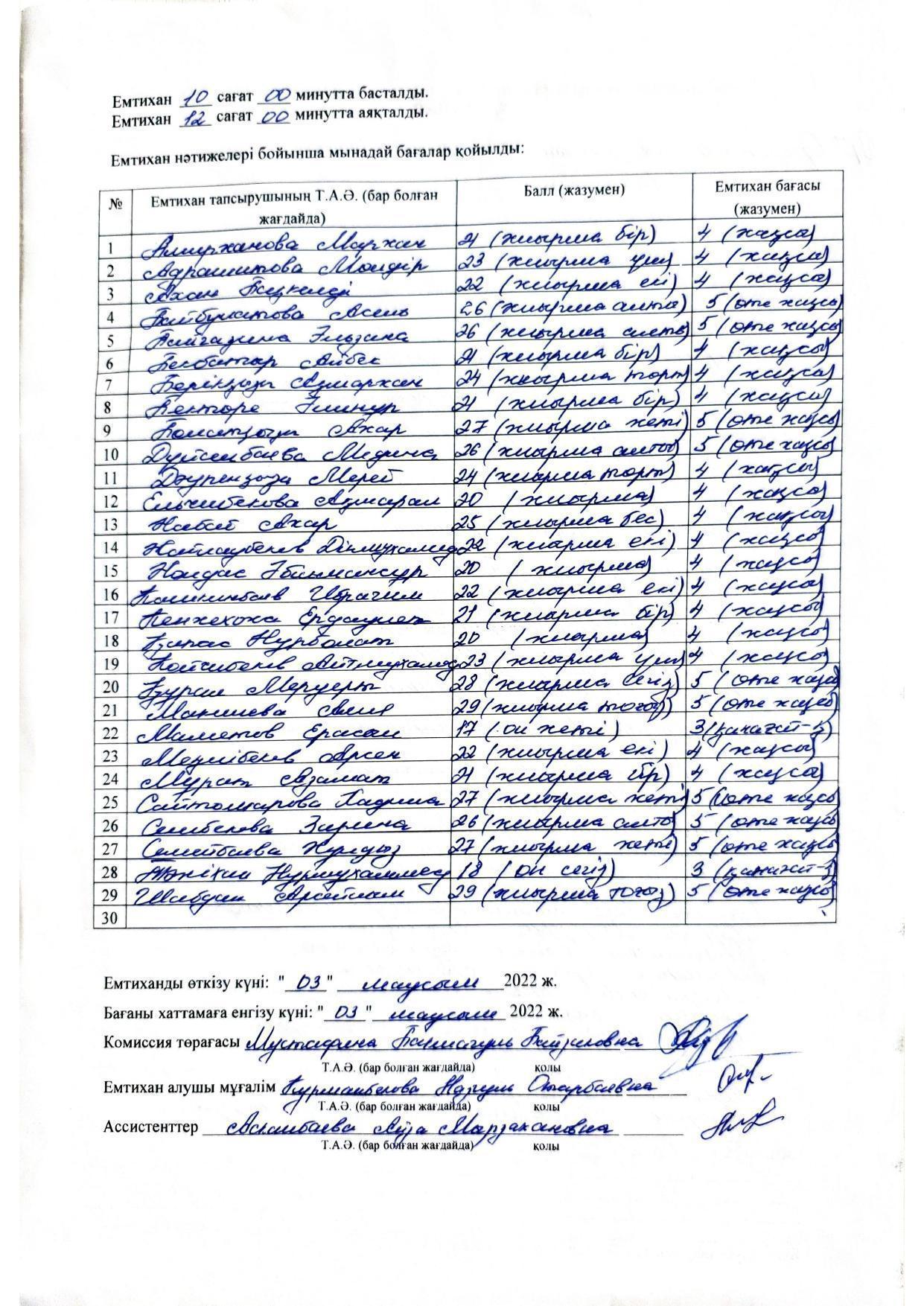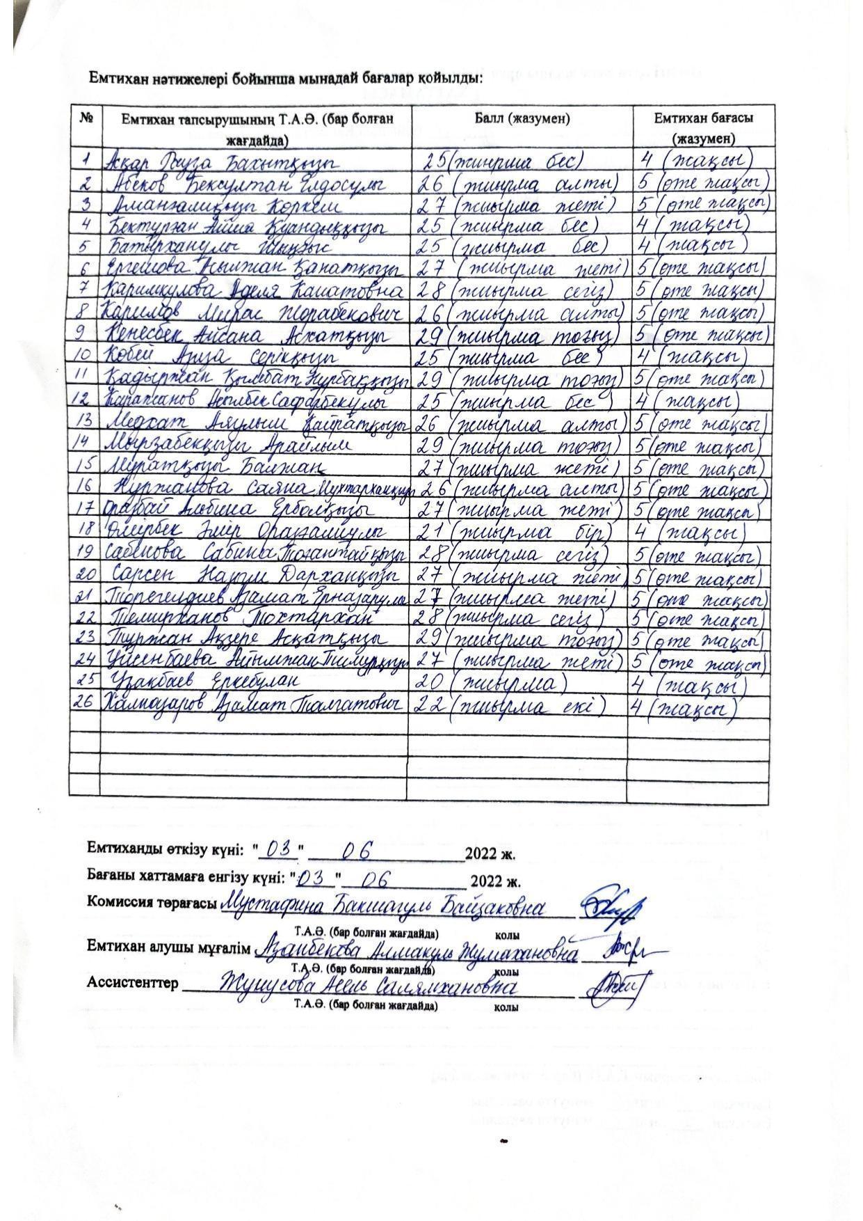 Қорытынды аттестаттау. Қазақ тілінен емтихан хаттамалары