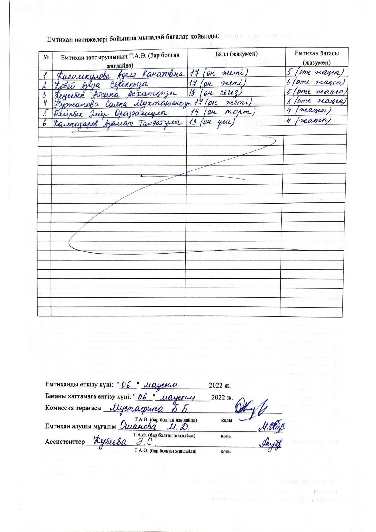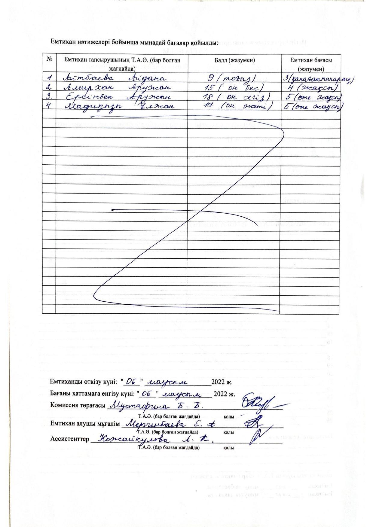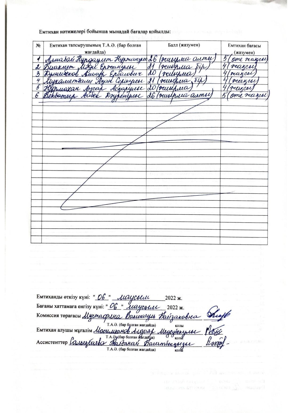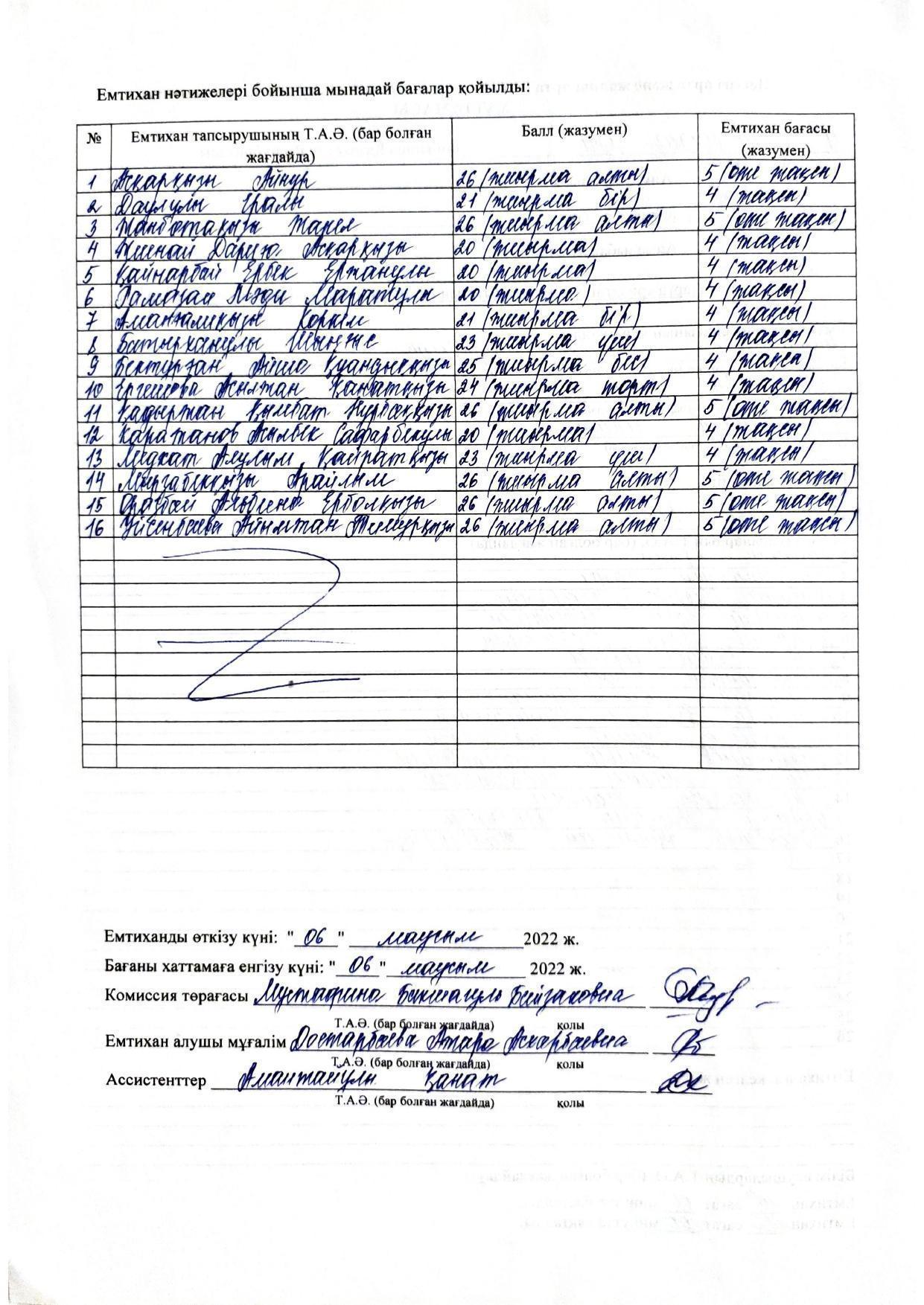 Қорытынды аттестаттау. Таңдау пәндері бойынша емтихан хаттамалары