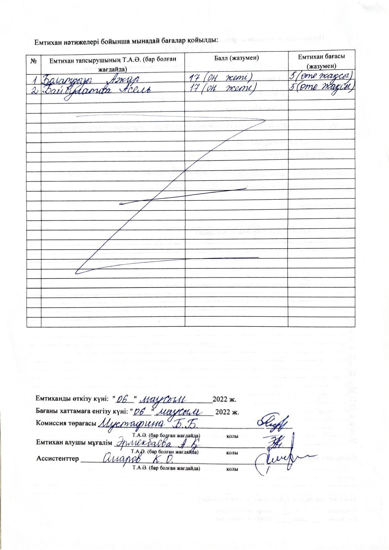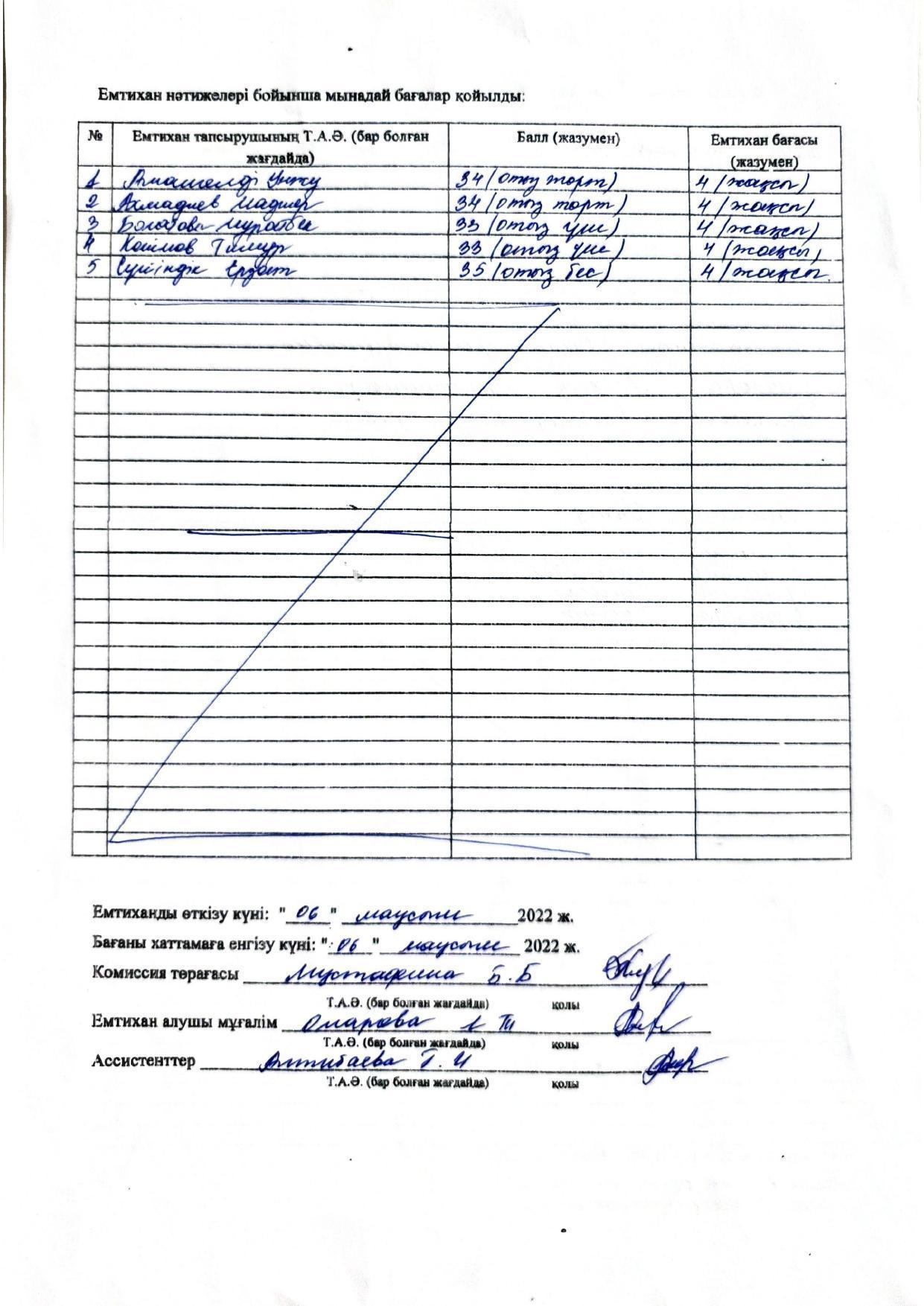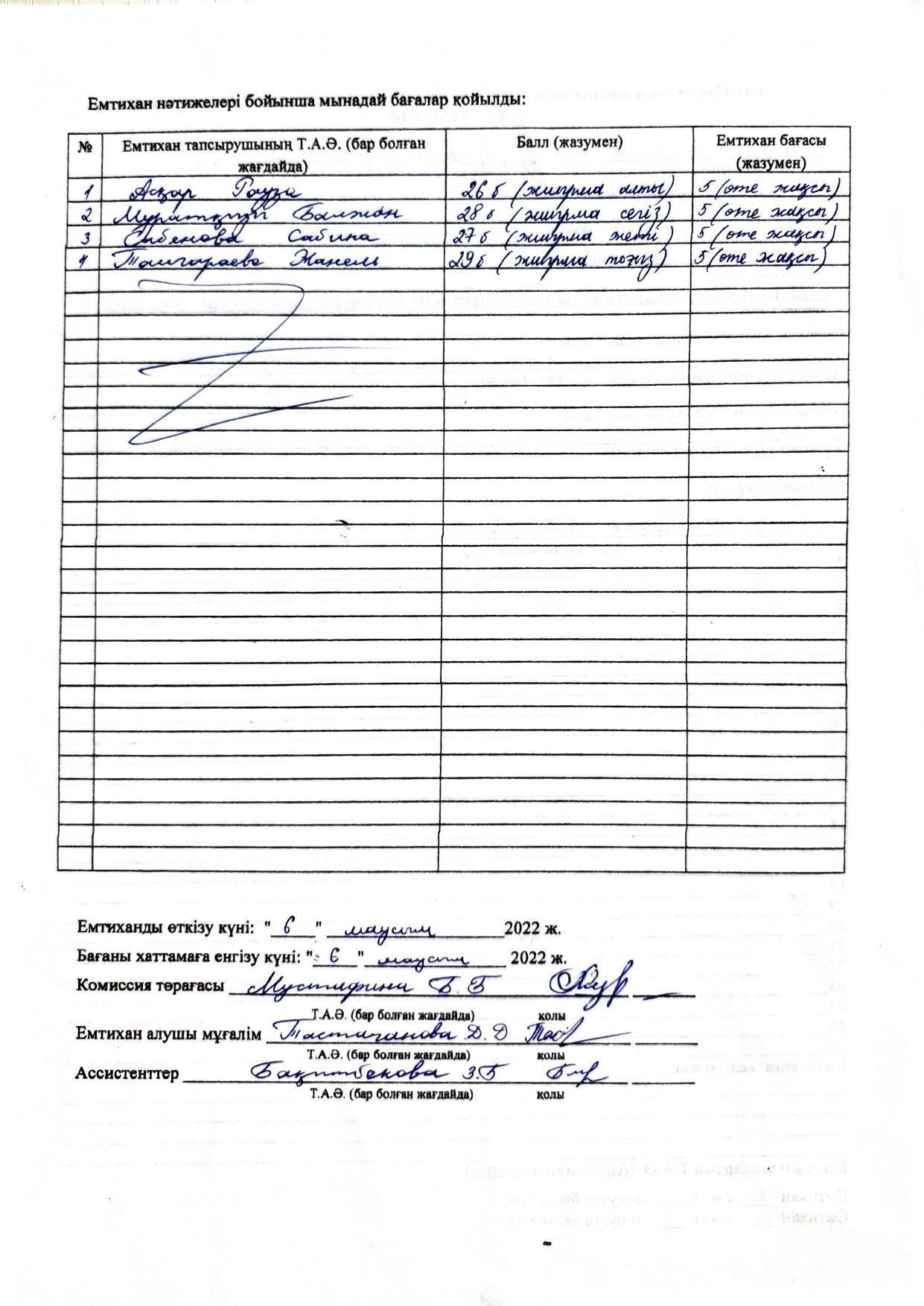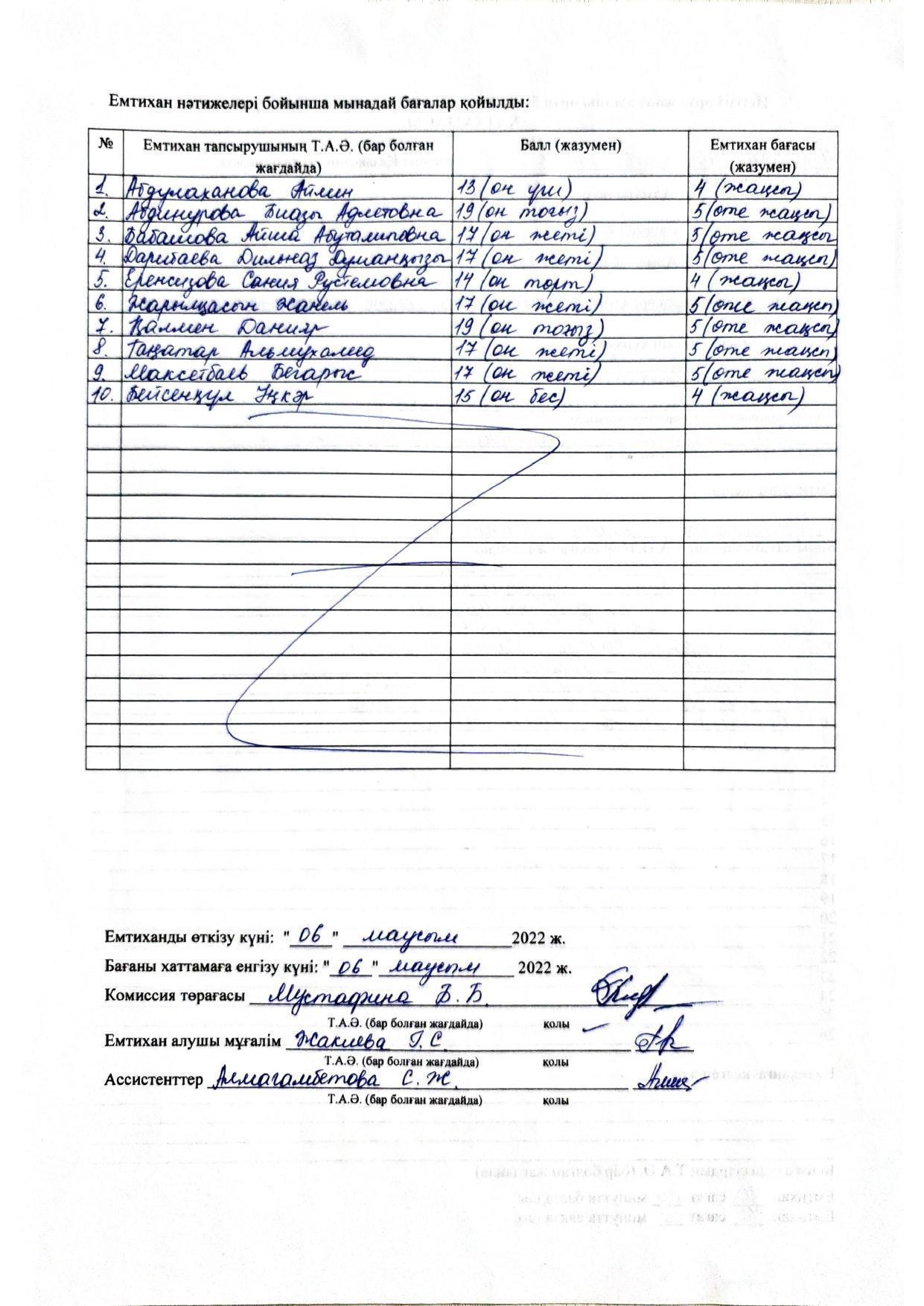 Қорытынды аттестаттау. Таңдау пәндері бойынша емтихан хаттамалары