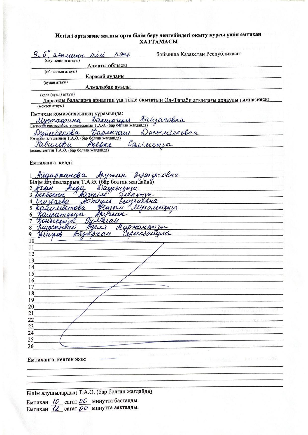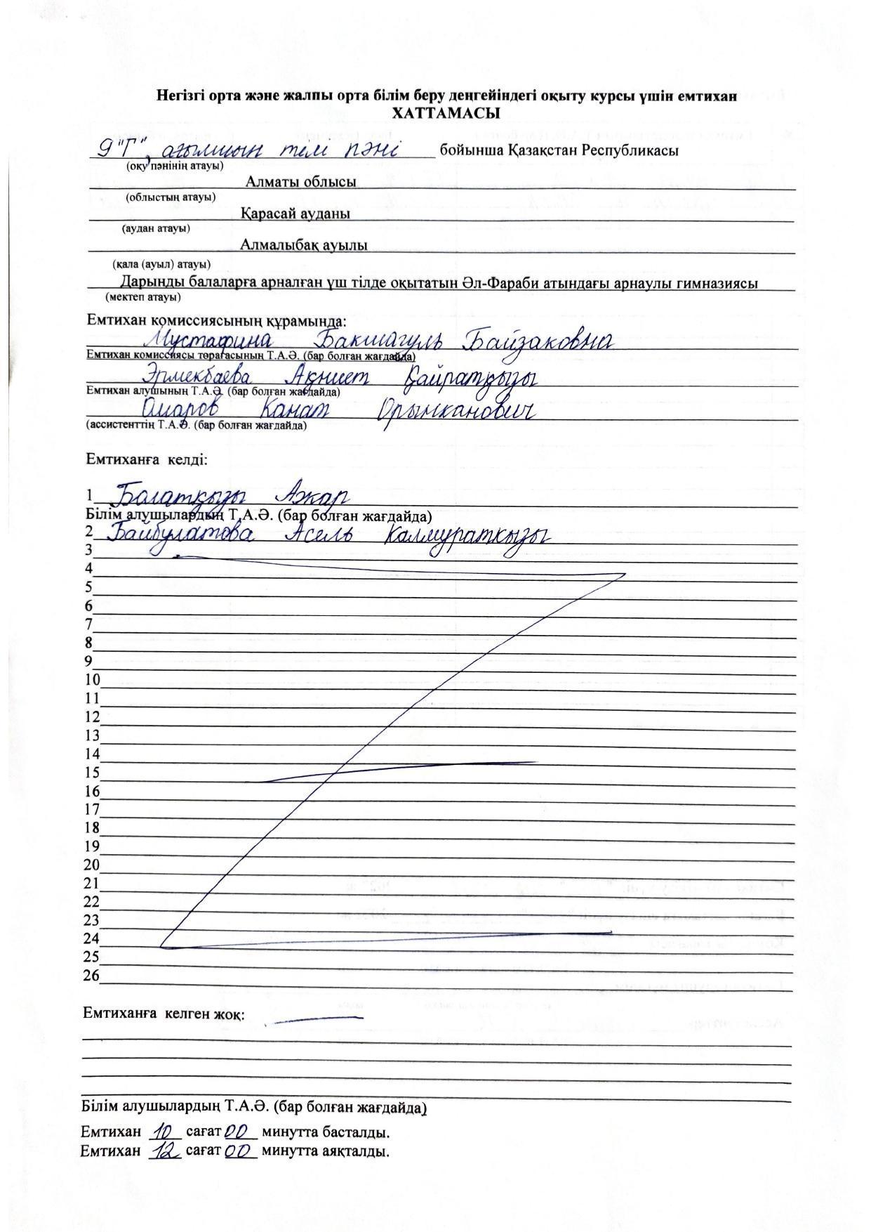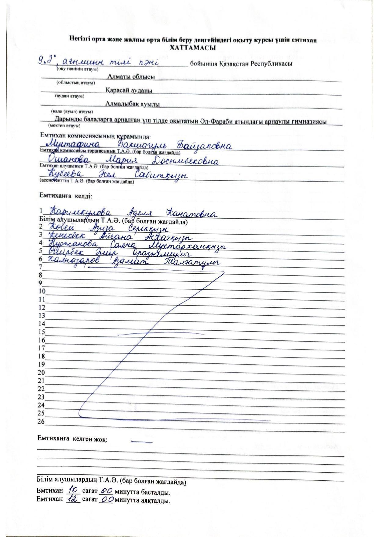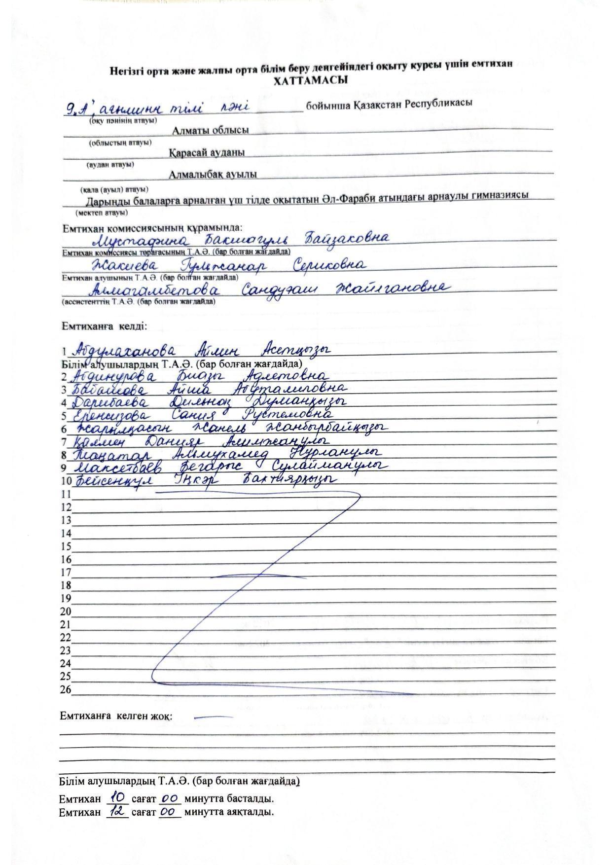 Қорытынды аттестаттау. Қазақ тілінен емтихан хаттамалары