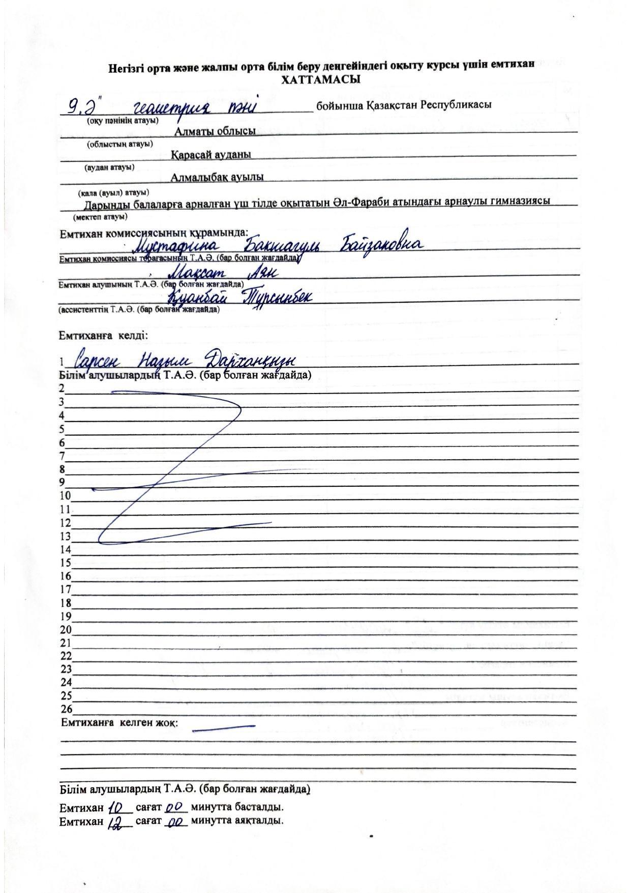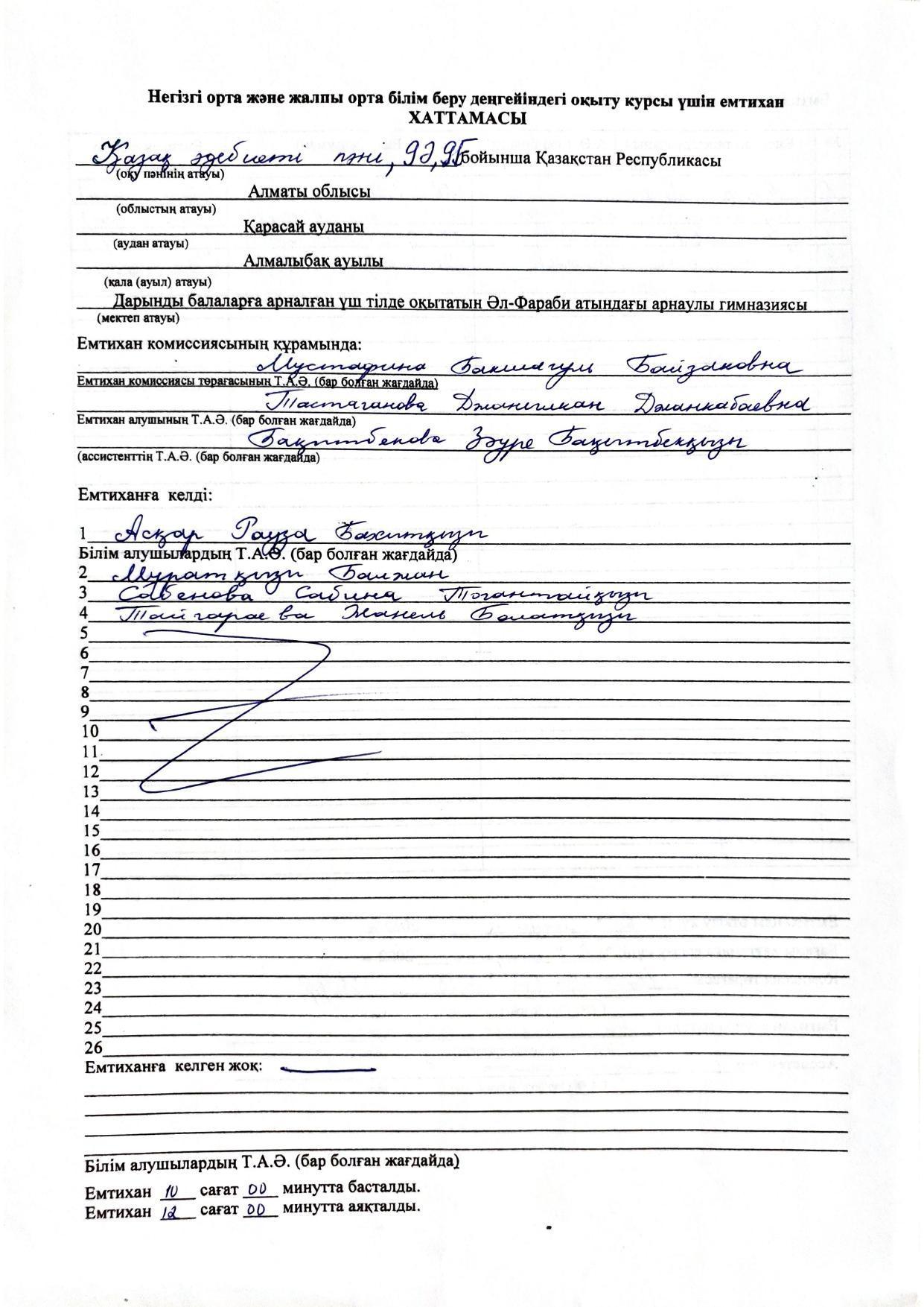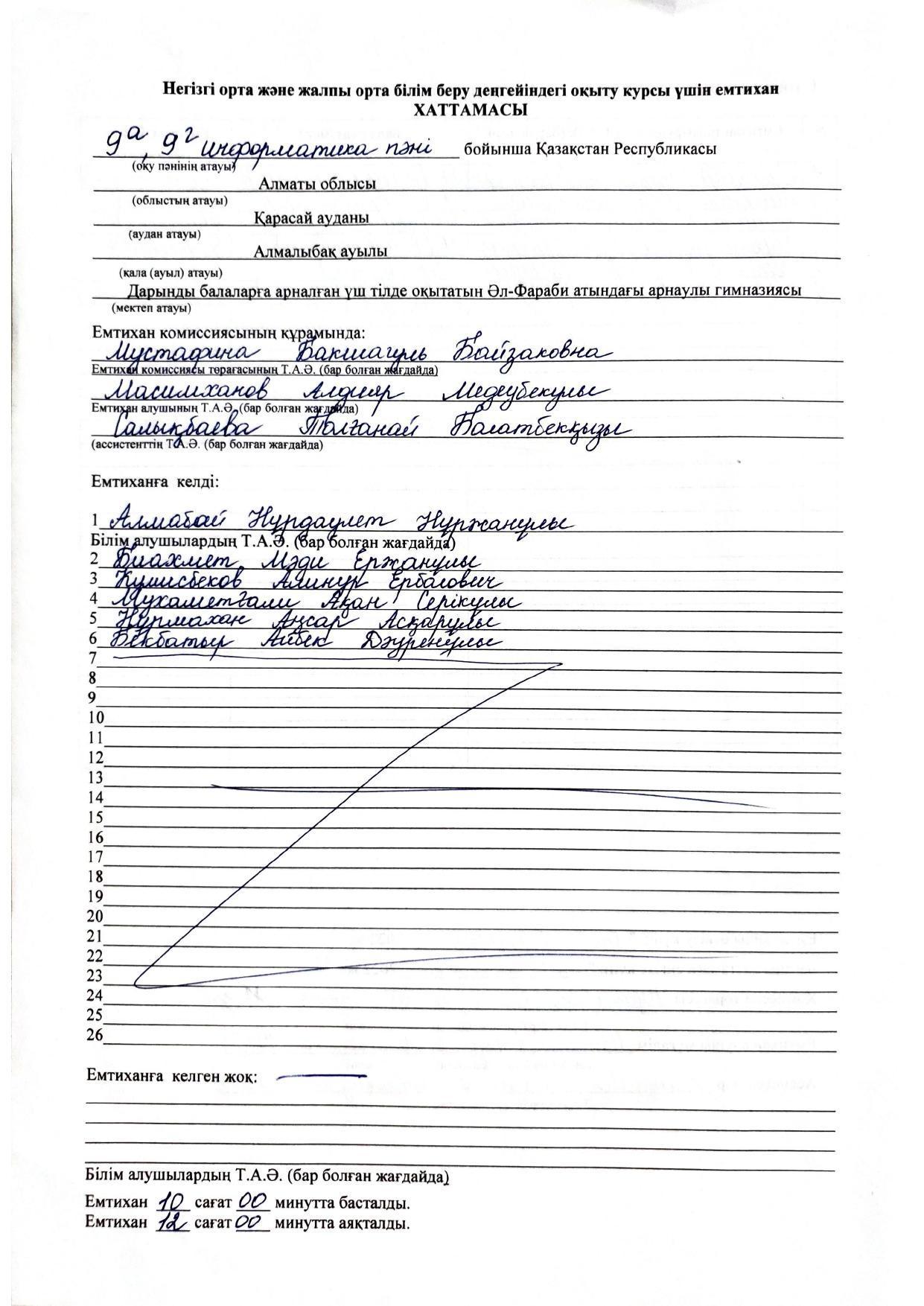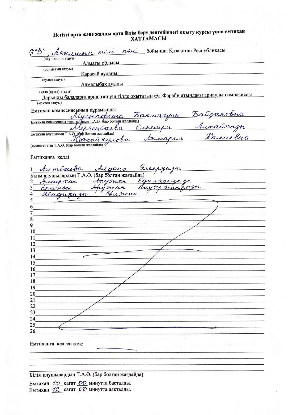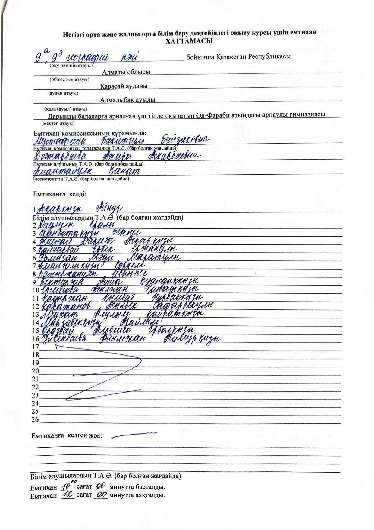 Қорытынды аттестаттау. Қазақ тілінен емтихан хаттамалары