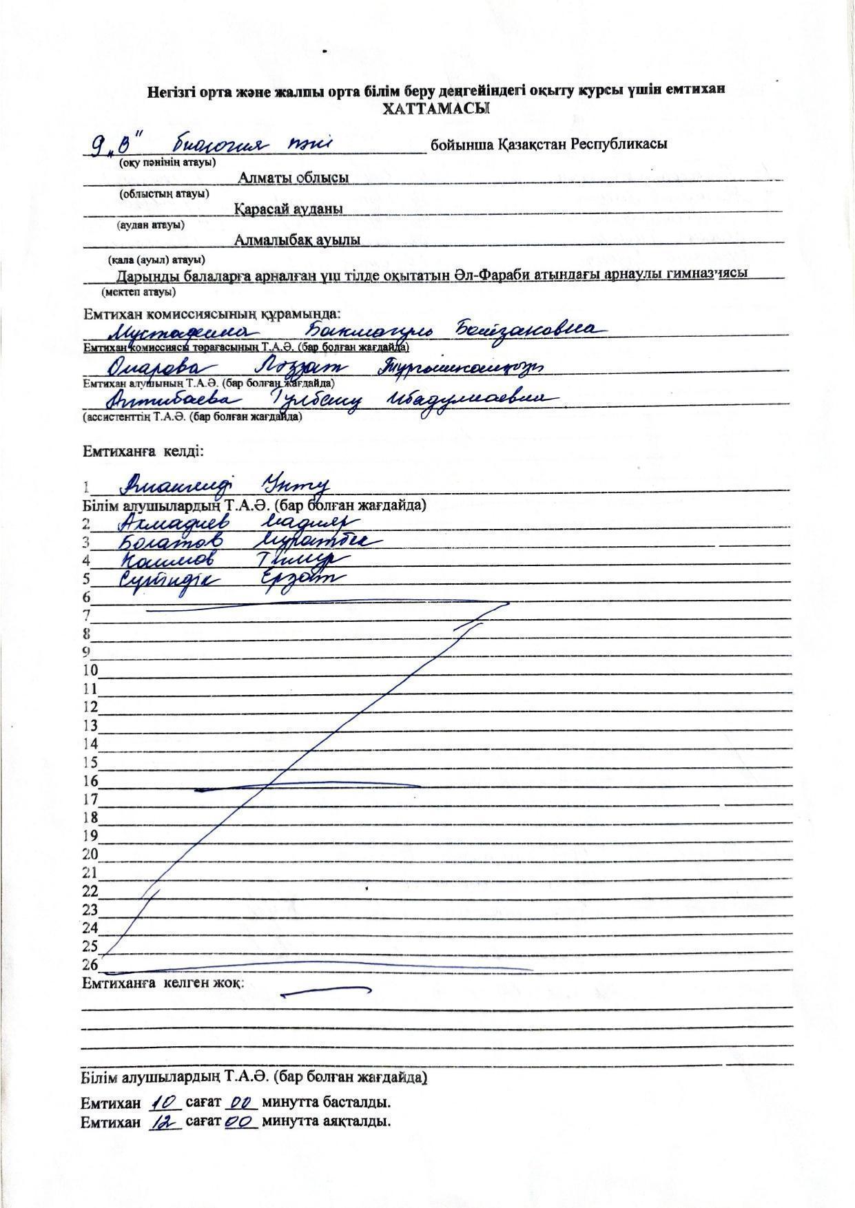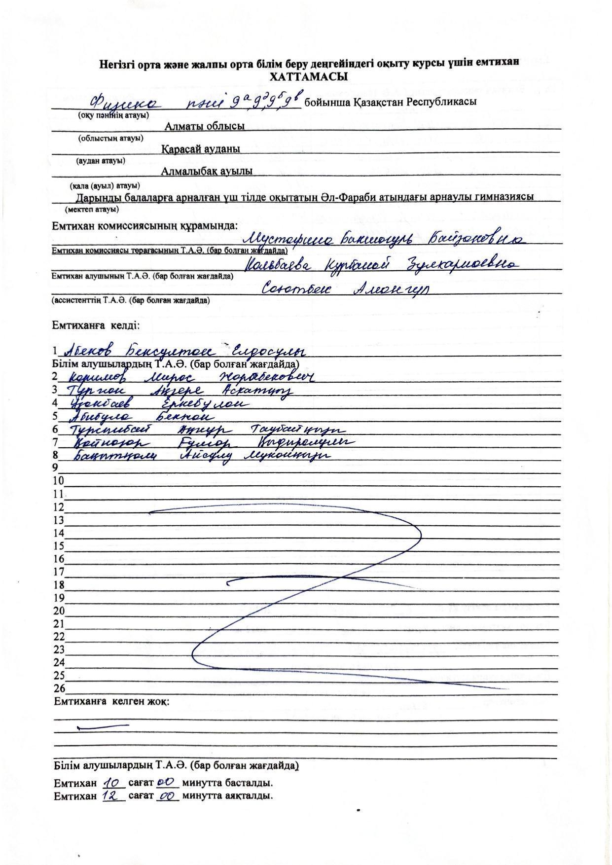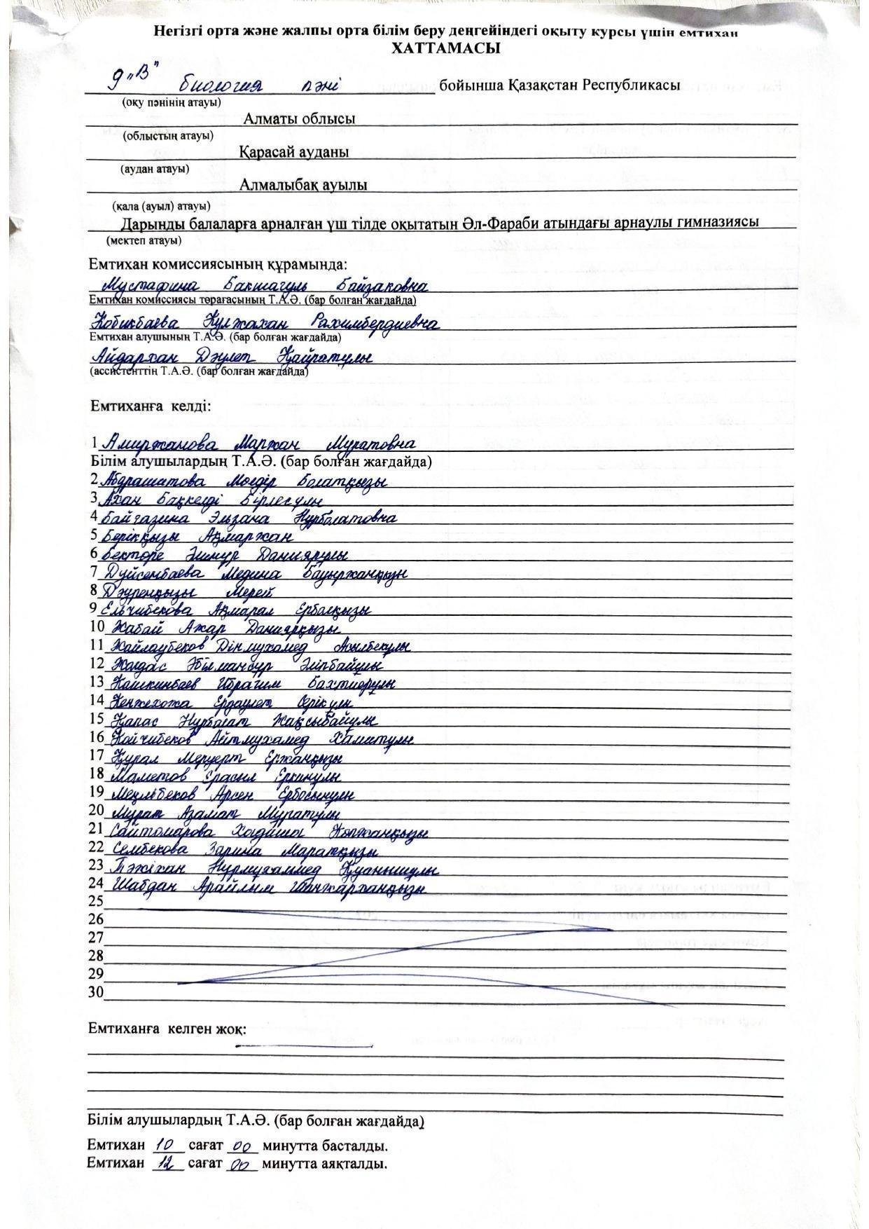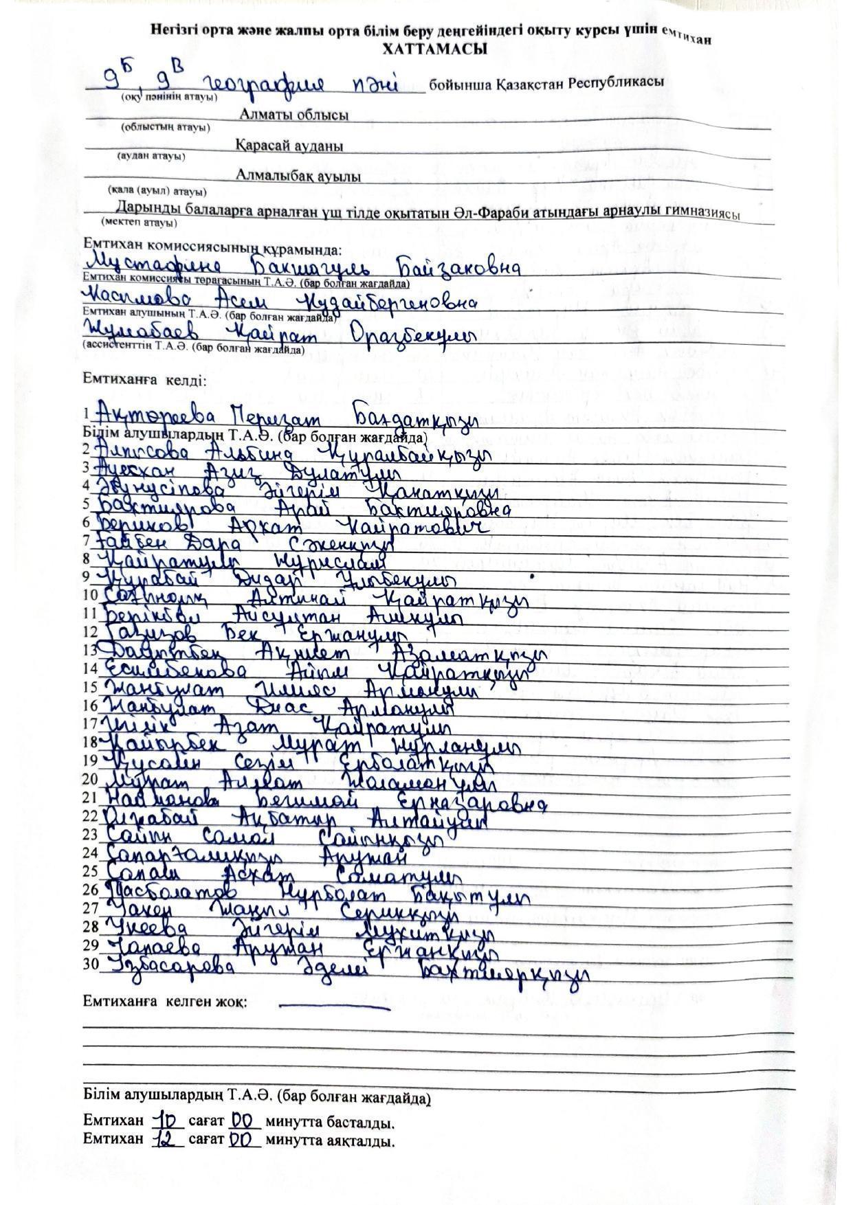 Қорытынды аттестаттау. Қазақ тілінен емтихан хаттамалары