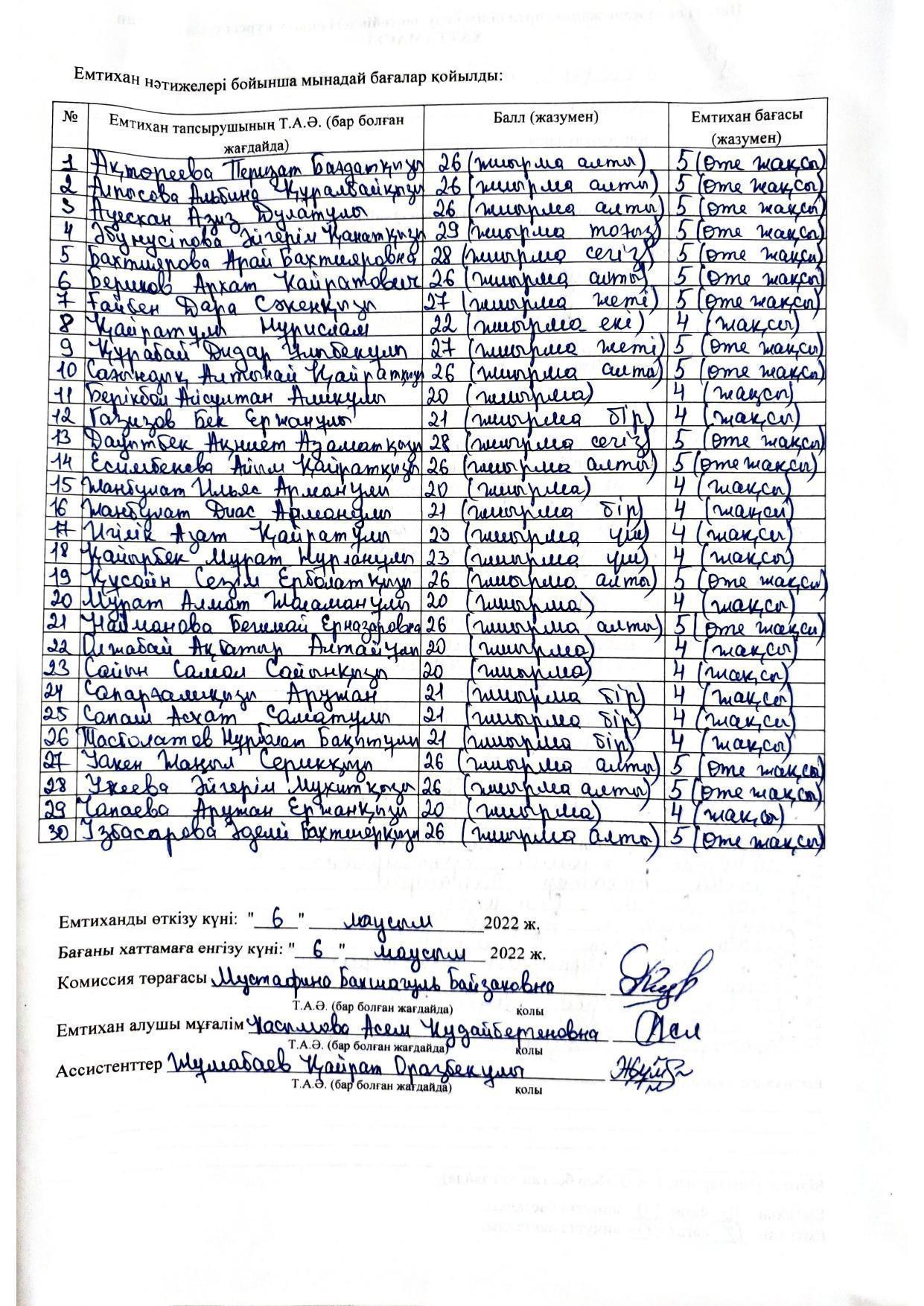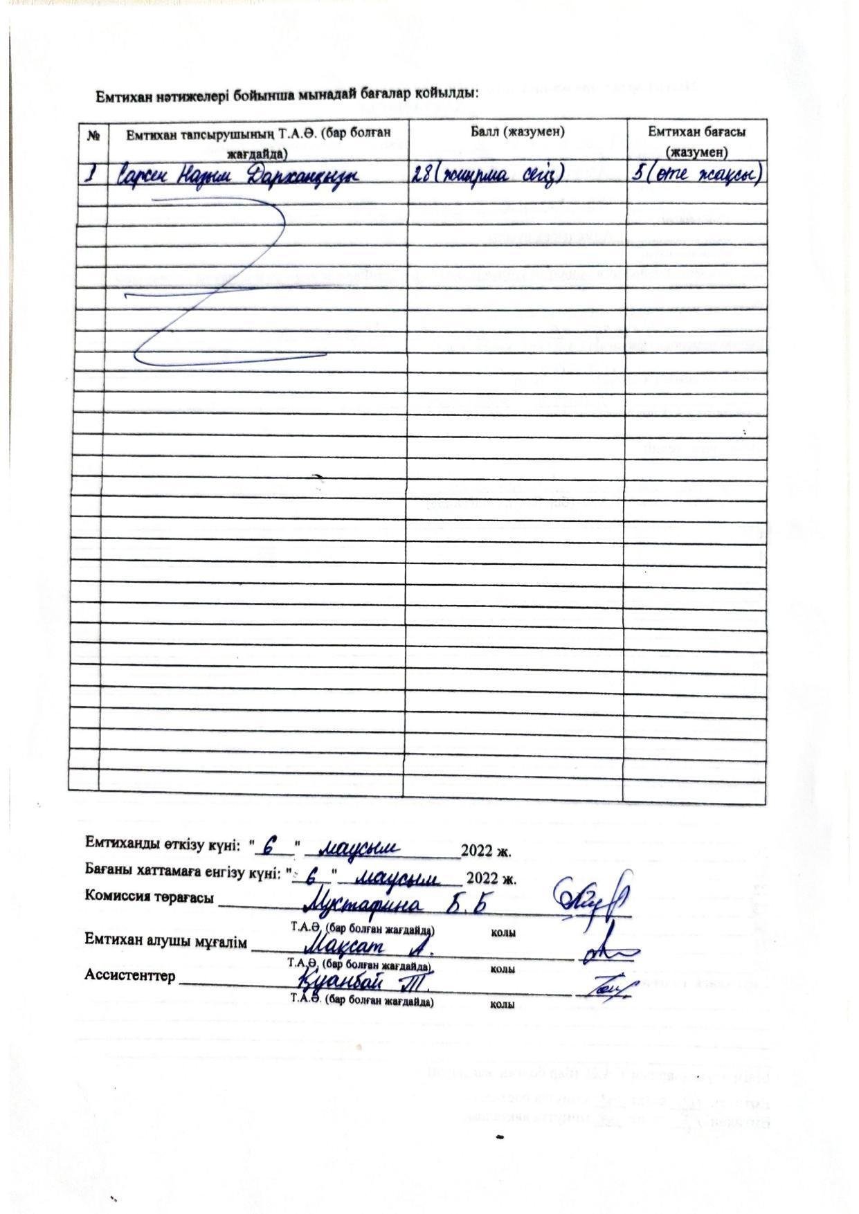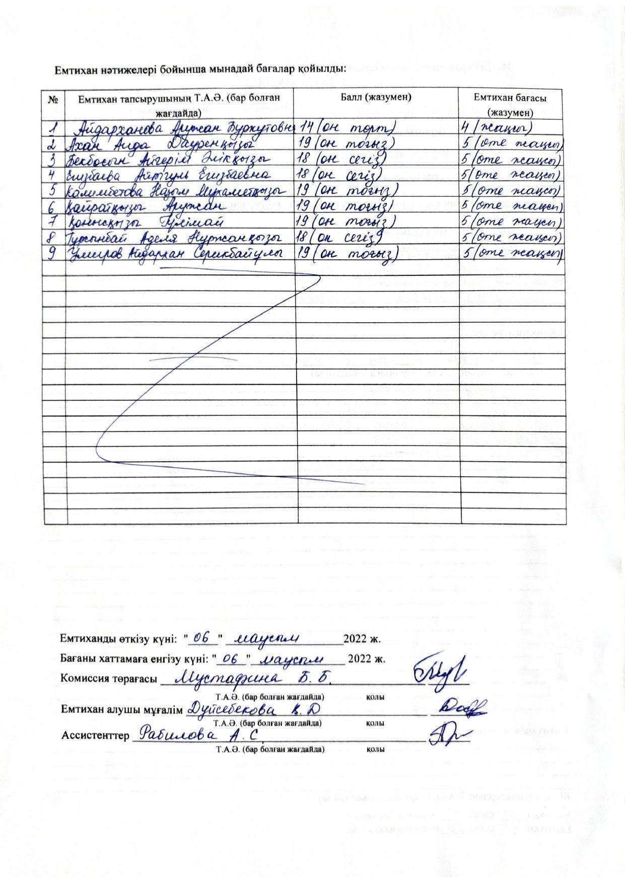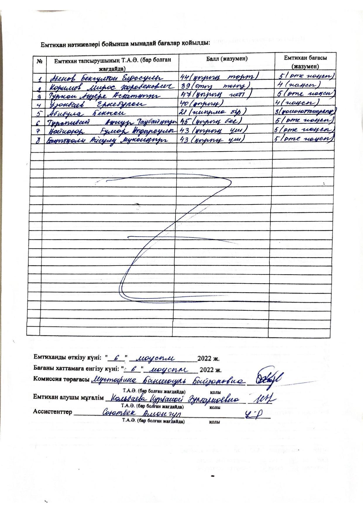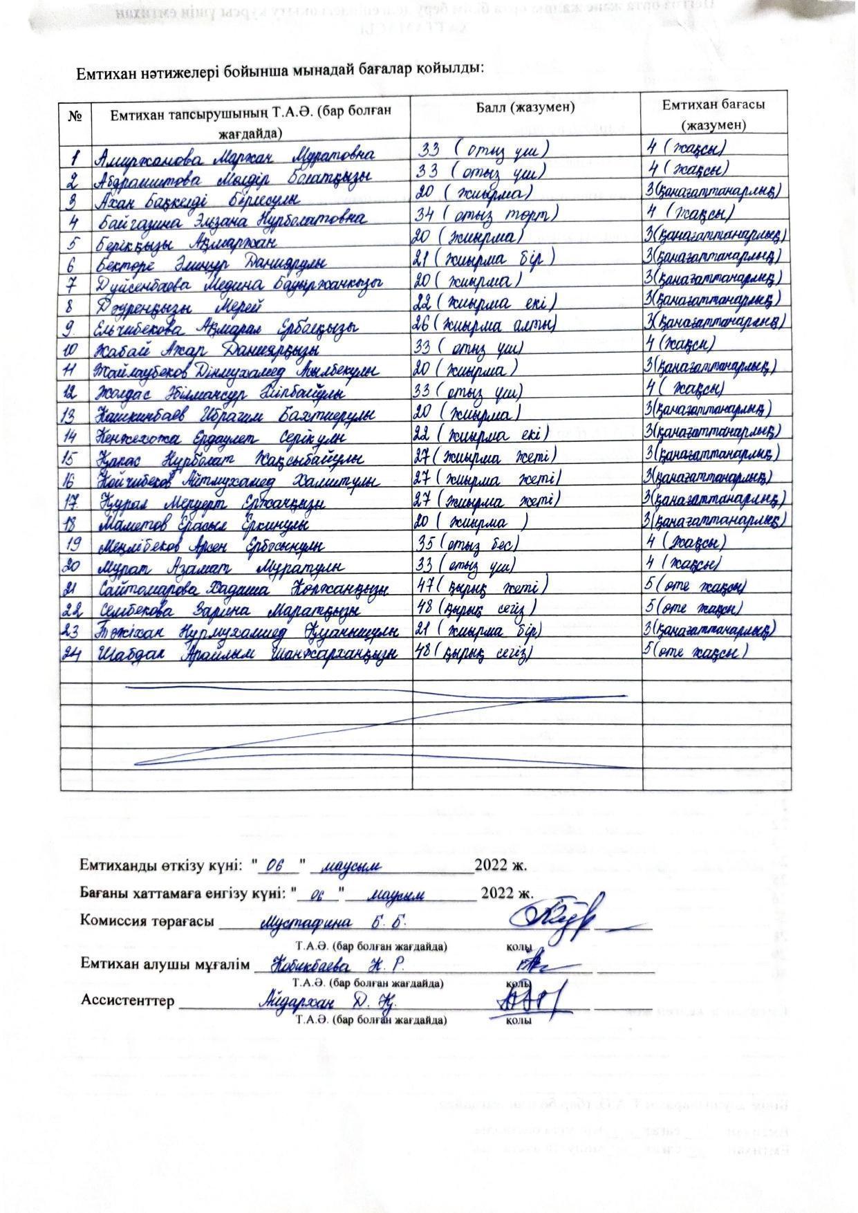 Қорытынды аттестаттау. Қазақ тілінен емтихан хаттамалары