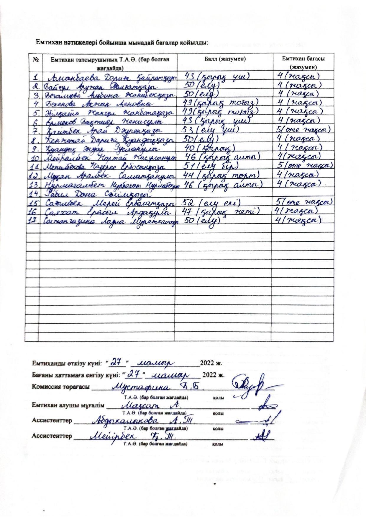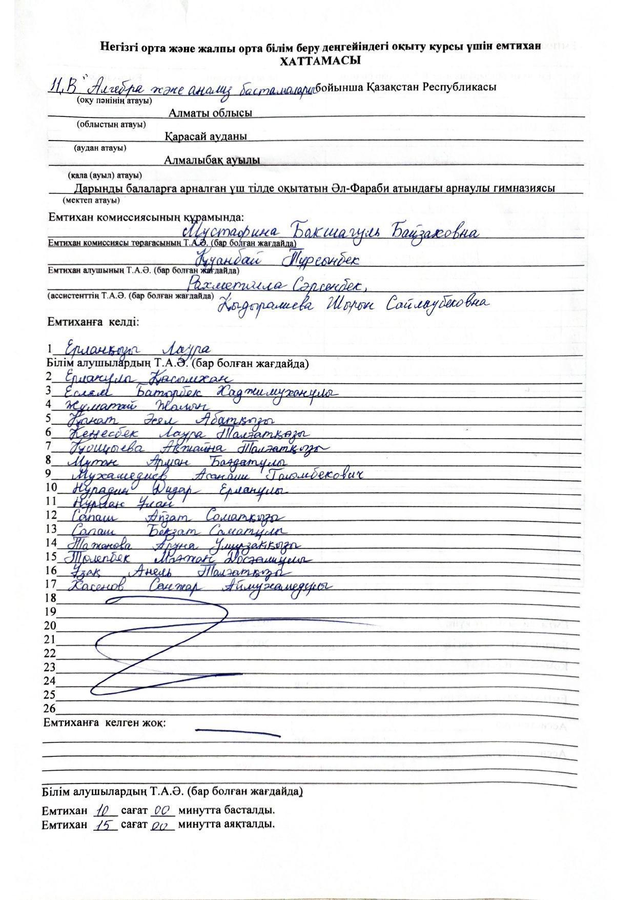 Алтын белгі үміткерлерінің емтихан хаттамалары