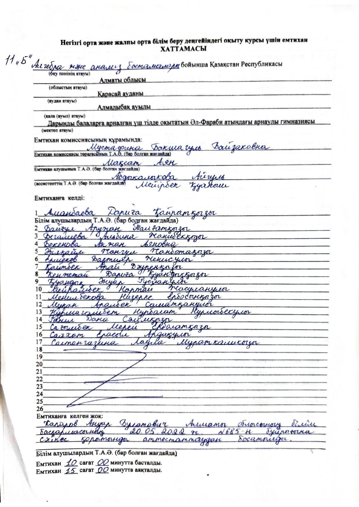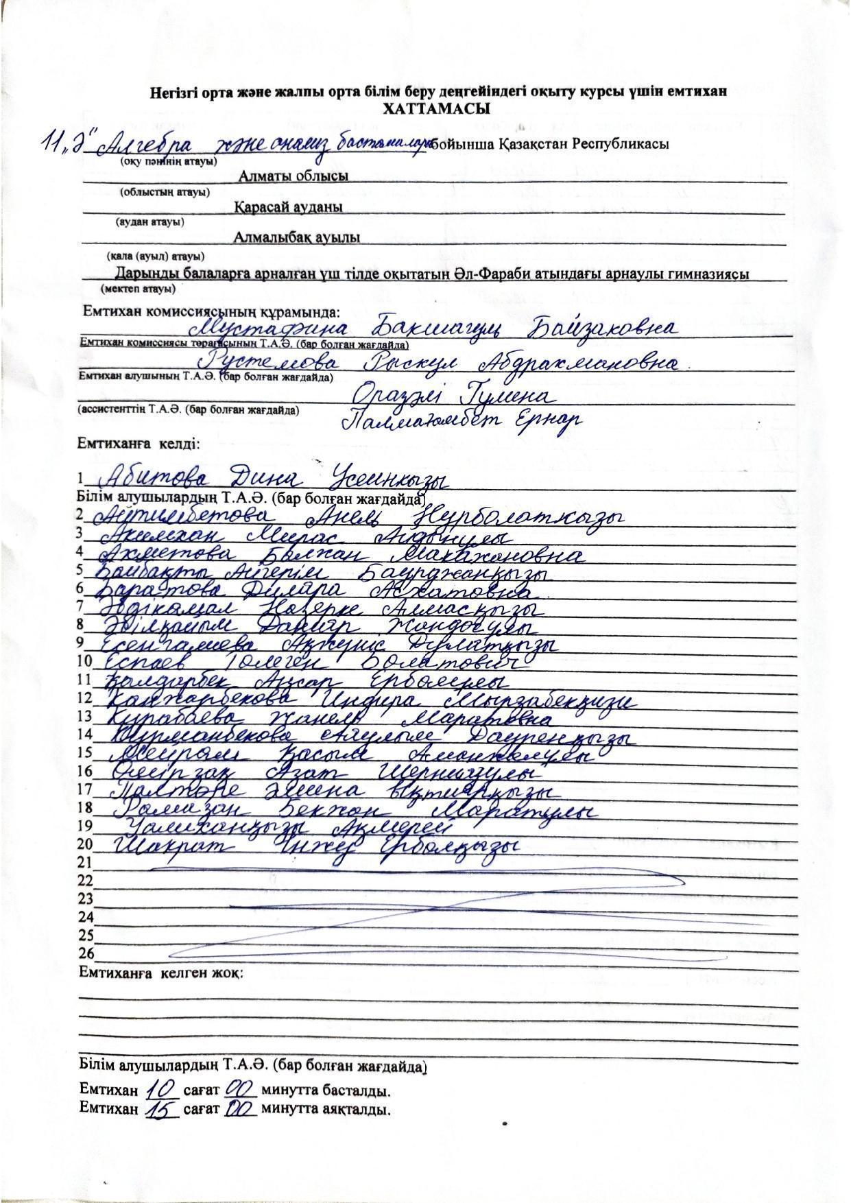 Мемлекеттік емтихан хаттамалары. Алгебра