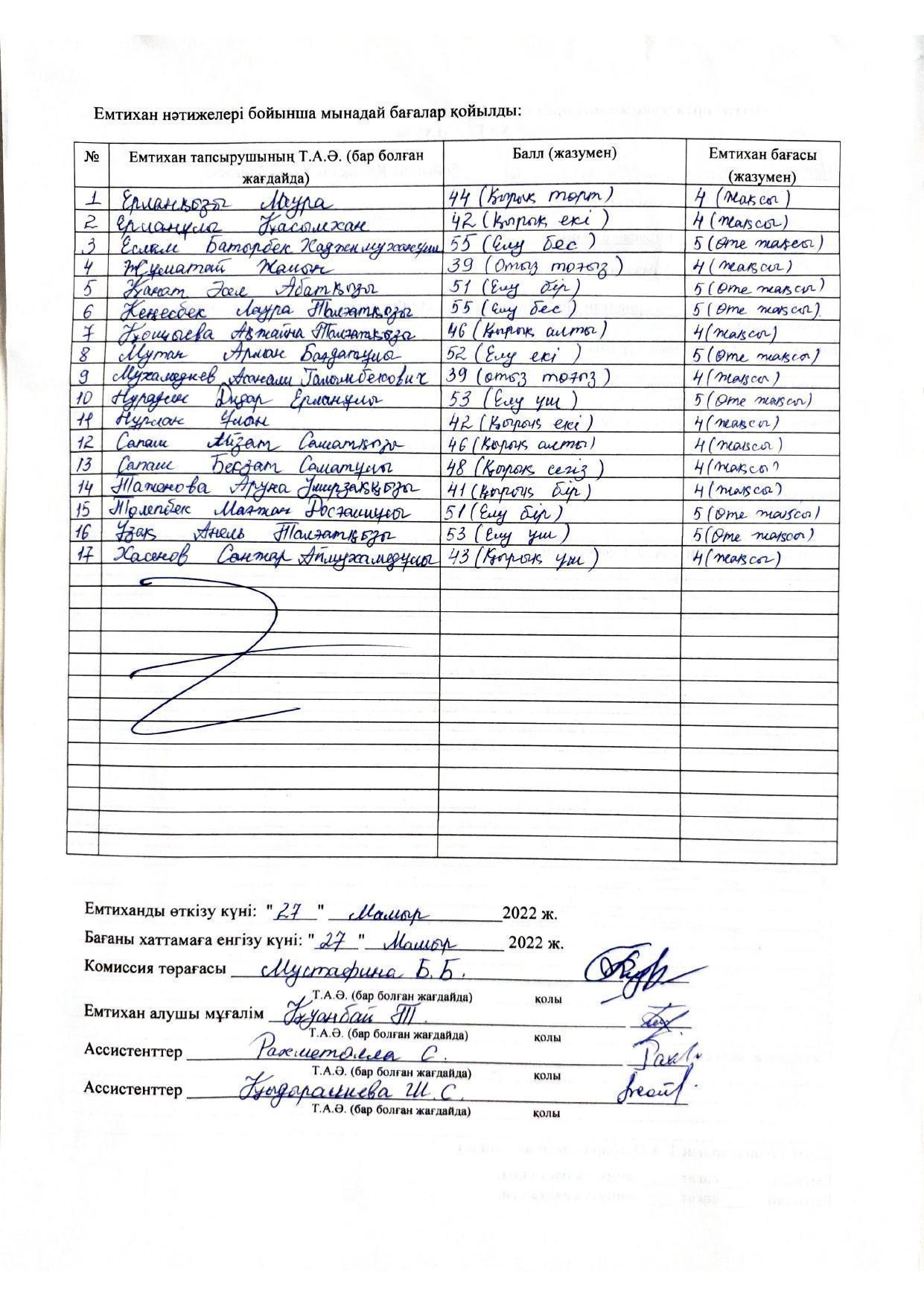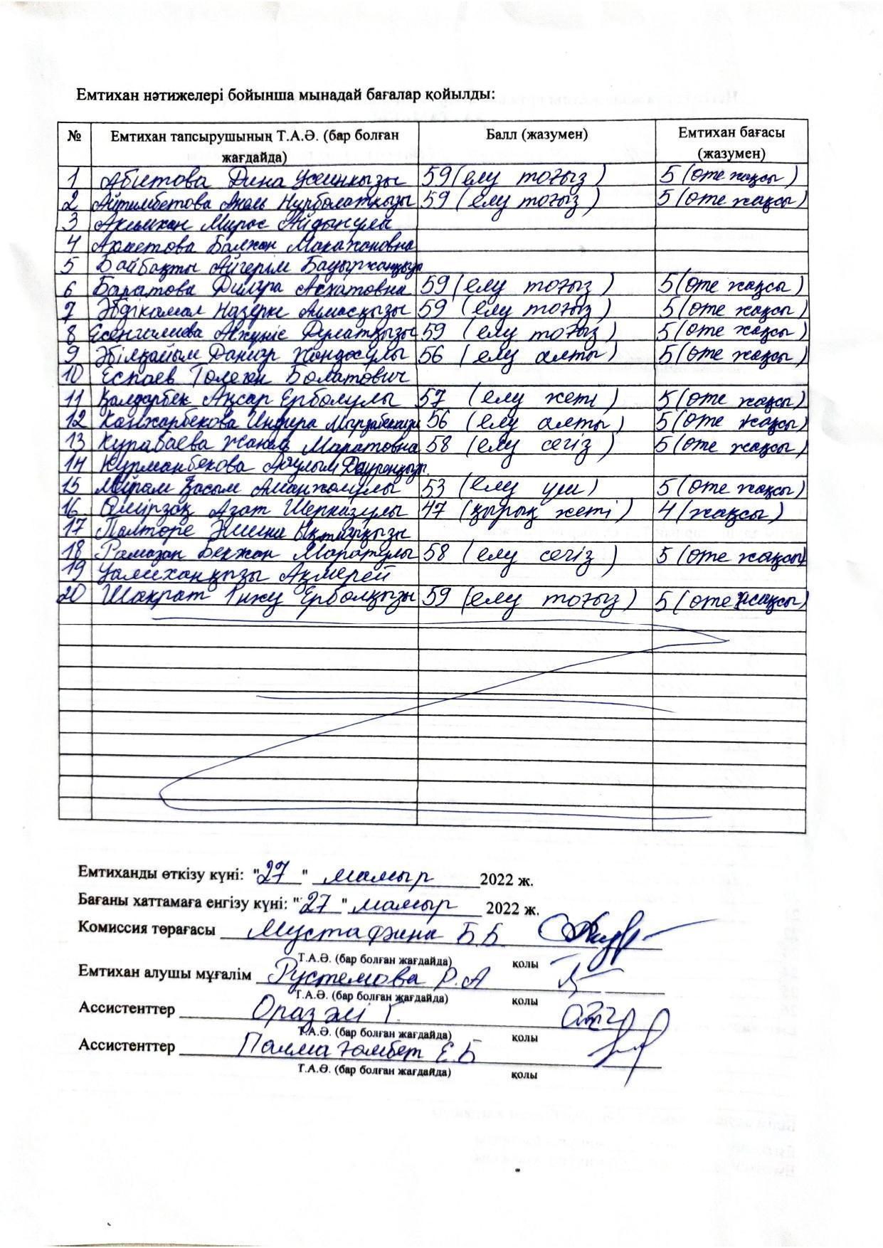 Мемлекеттік емтихан хаттамалары. Таңдау пәндер