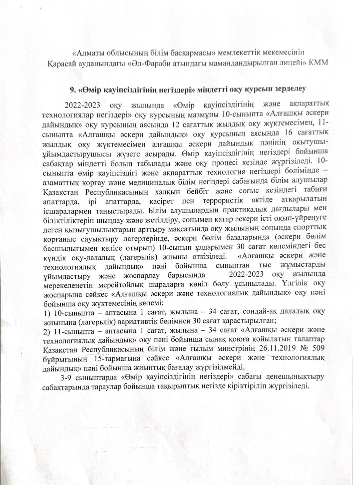 Өмір қауіпсіздігі негіздері 2022-2023 оқу жылы
