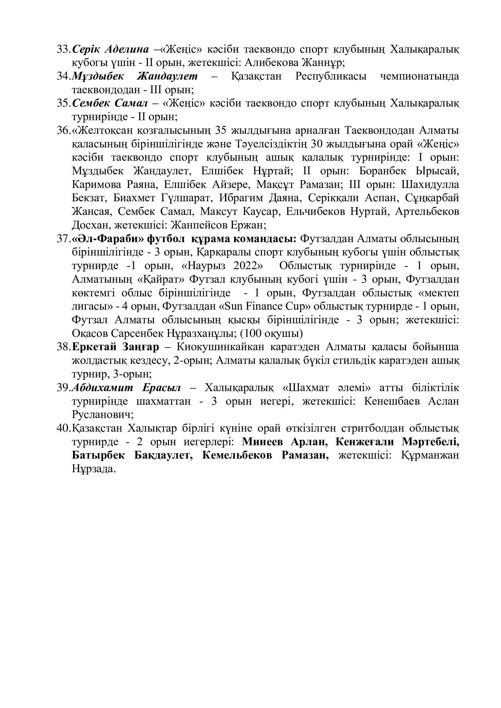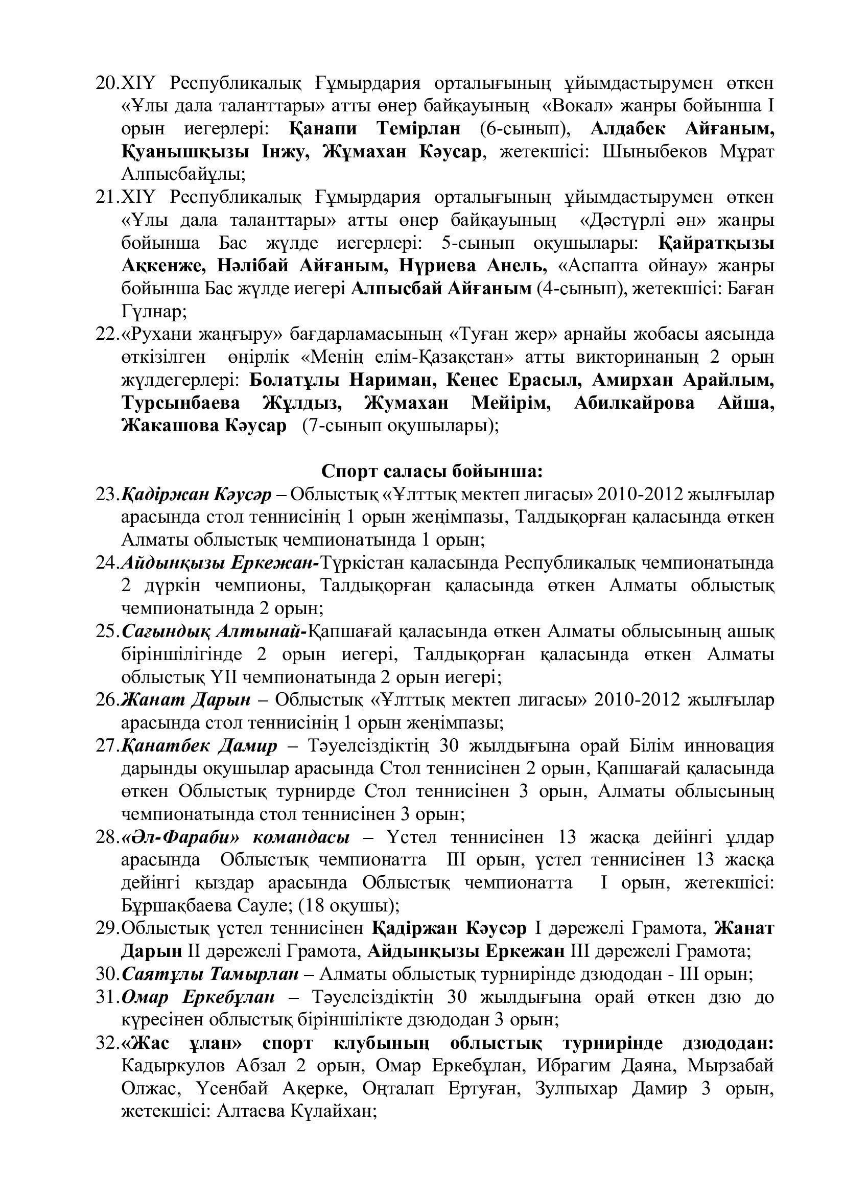 » Спорттық, шығармашылық, мәдени конкурстарға қатысу нәтижелері 2021-2022