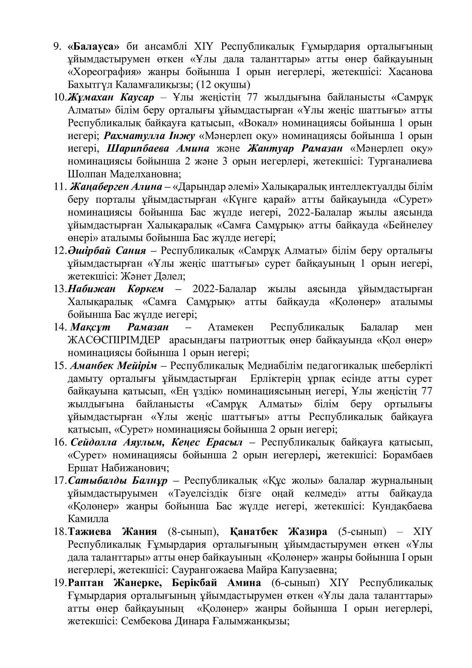 Спорттық, шығармашылық, мәдени конкурстарға қатысу нәтижелері 2021-2022