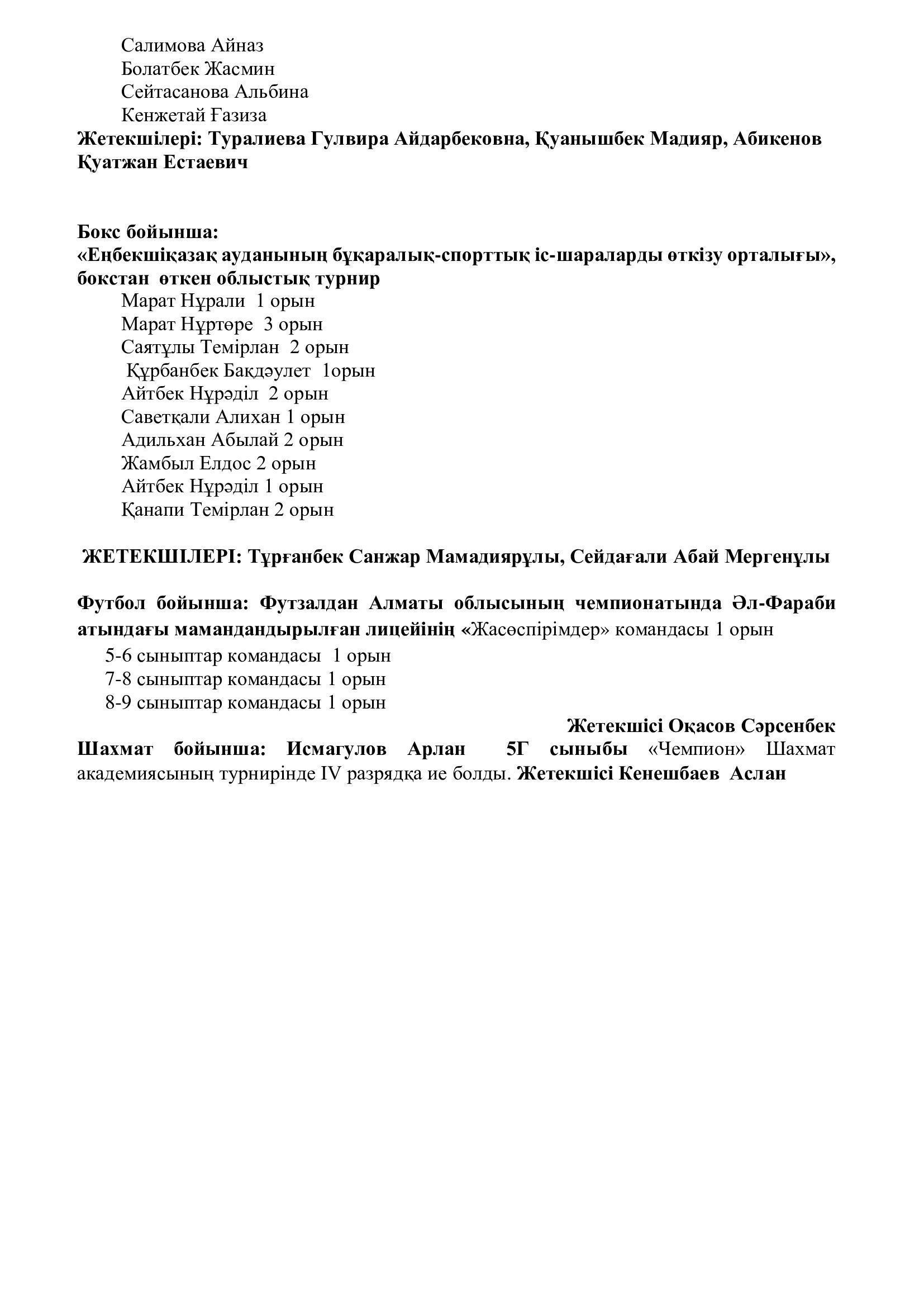 Спорттық, шығармашылық, мәдени конкурстарға қатысу нәтижелері 2021-2022