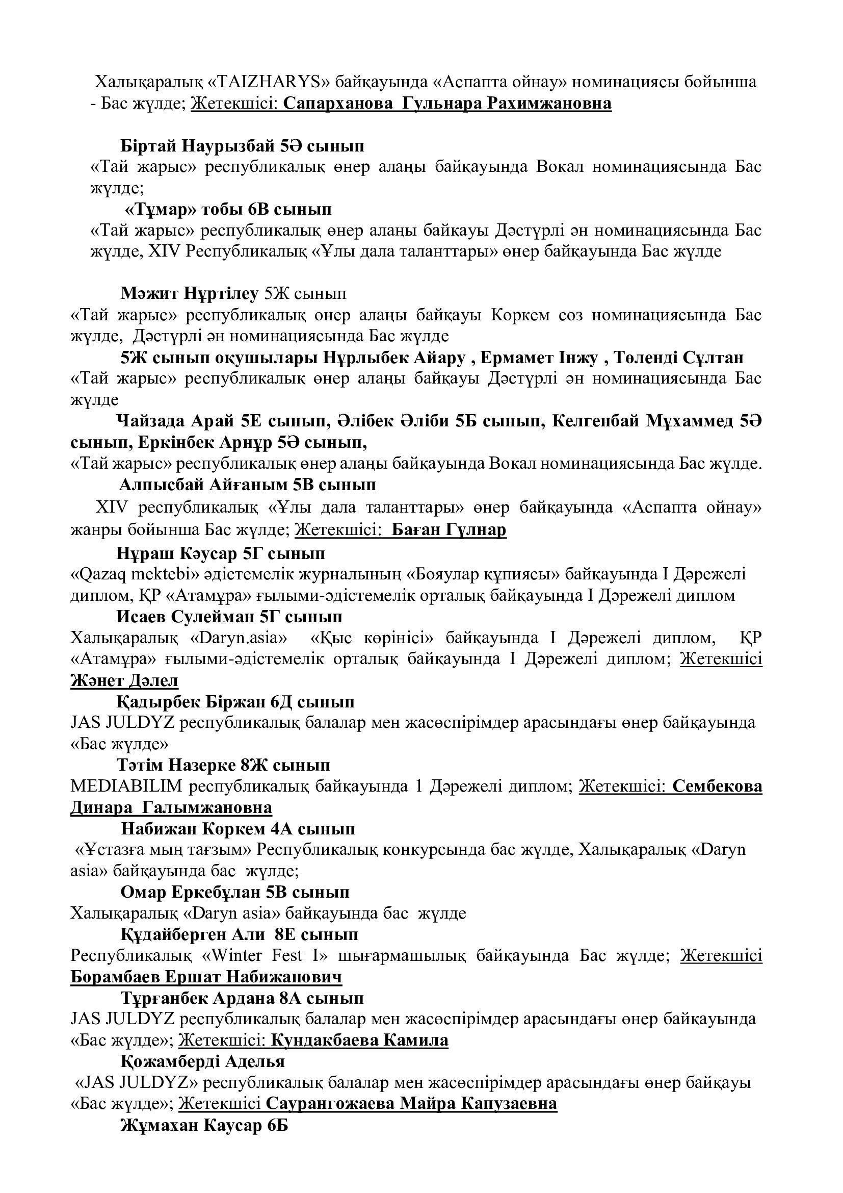 Оқушылар жетістіктері