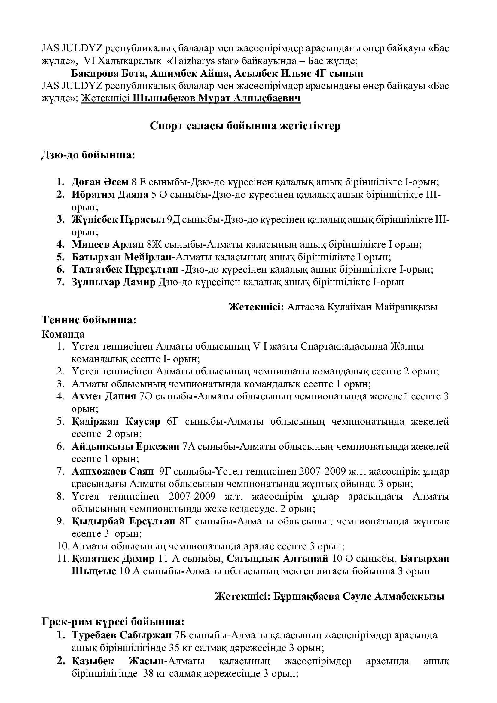 » Спорттық, шығармашылық, мәдени конкурстарға қатысу нәтижелері 2022-2023